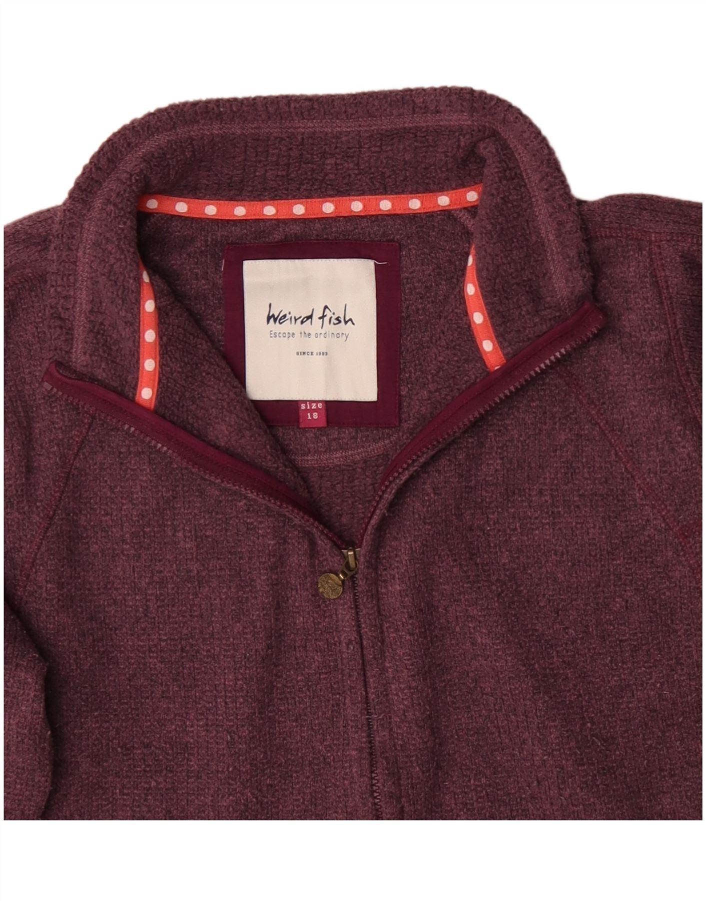 - Описание ИИ: Женская флисовая куртка Weird Fish изготовлена из мягкого флиса бордового цвета, обеспечивающего тепло и комфорт. Имеет практичный воротник-стойку и длинные рукава. Полная застежка-молния обеспечивает удобство ношения. Два кармана на молнии обеспечивают надежное хранение. Регулярная посадка позволяет комфортно надевать одежду. Утепленный дизайн и подкладка придают дополнительный уют.