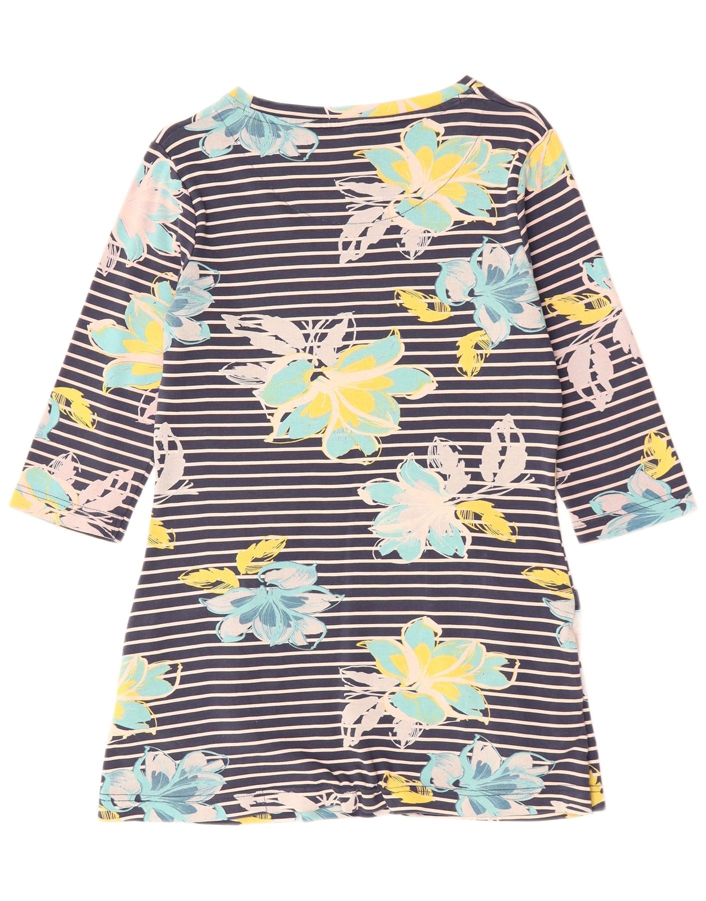 Женский топ WEIRD FISH с рукавом 3/4, UK 10, маленький размер, темно-синий, хлопковый с цветочным принтом