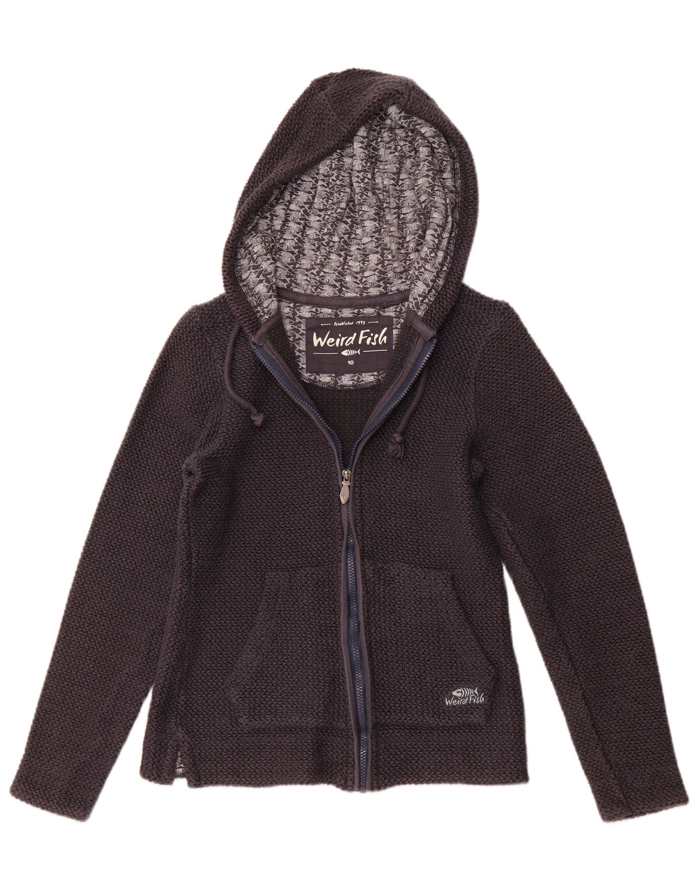 Женский свитер с капюшоном на молнии WEIRD FISH, размер UK 10, маленький, темно-синий, хлопок