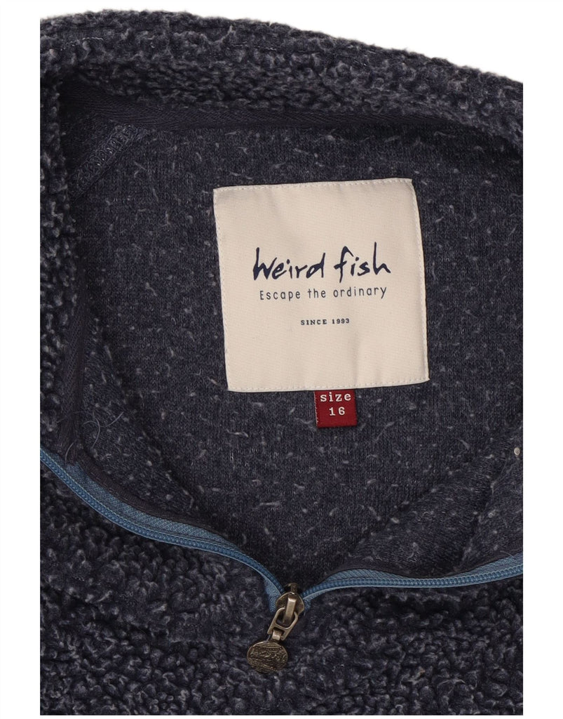 WEIRD FISH Womens Zip Neck Fleece Jumper UK 16 Large Navy Blue Polyester