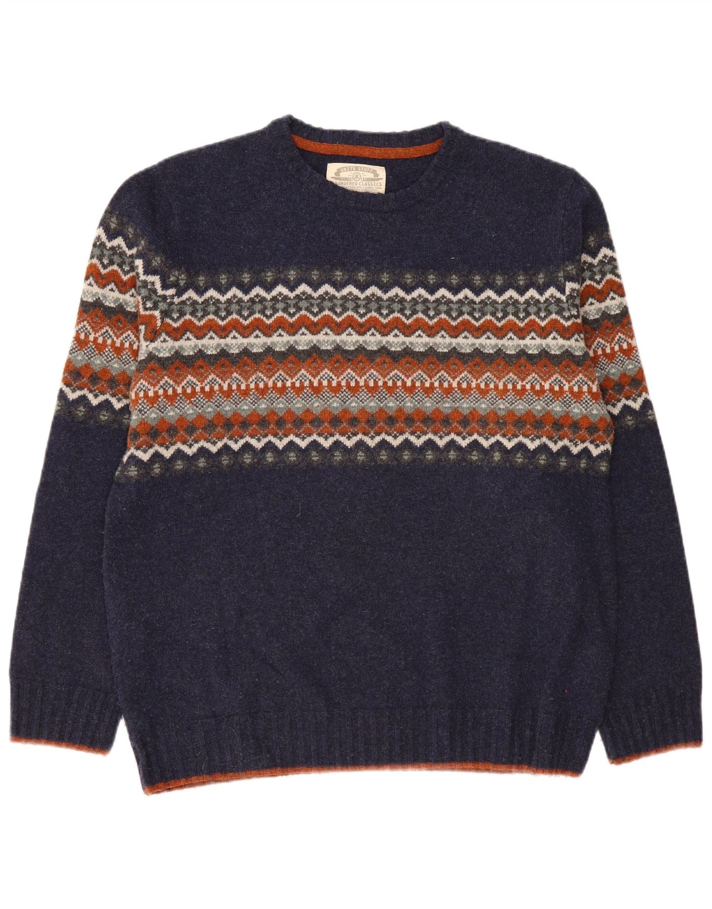 Мужской джемпер с вырезом «лодочкой» WHITE STUFF, темно-синий, из овечьей шерсти с жаккардовым узором