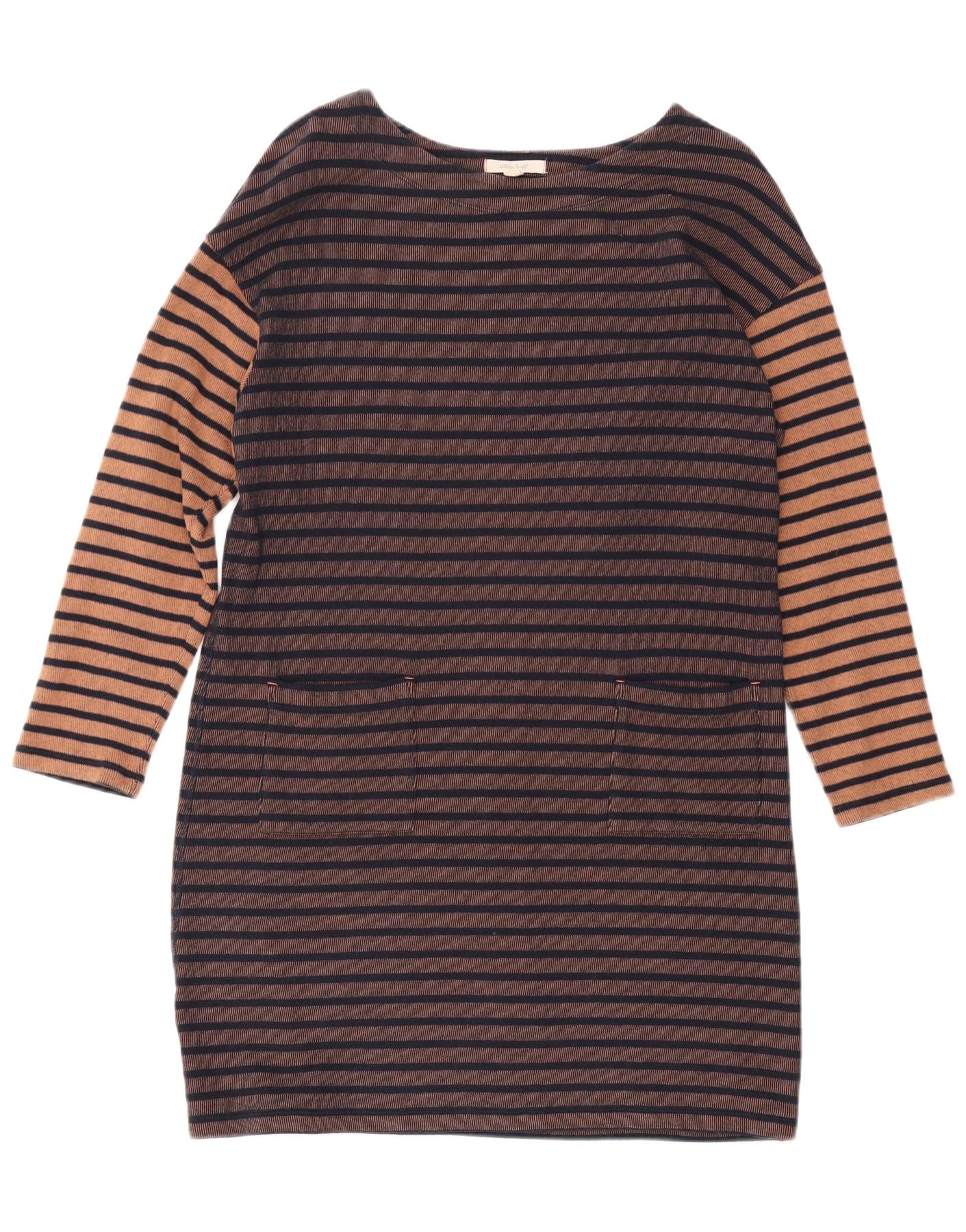Женское платье-футляр с длинным рукавом WHITE STUFF UK 14, большое коричневое в полоску