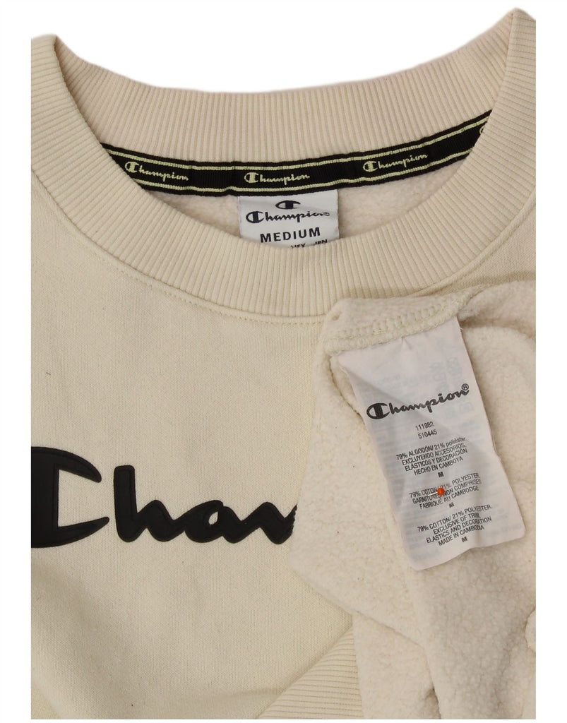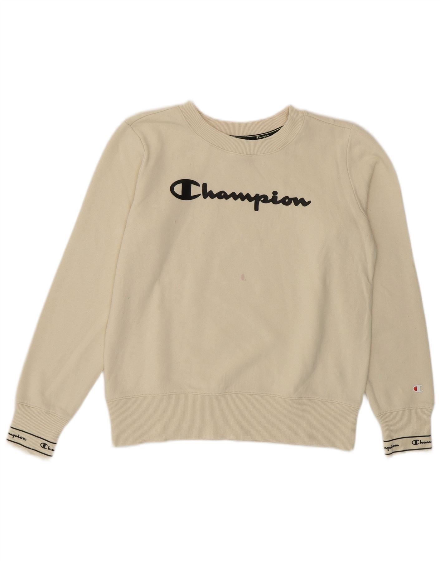 CHAMPION Womens Graphic Sweatshirt Jumper UK 14 Medium Off White Cotton