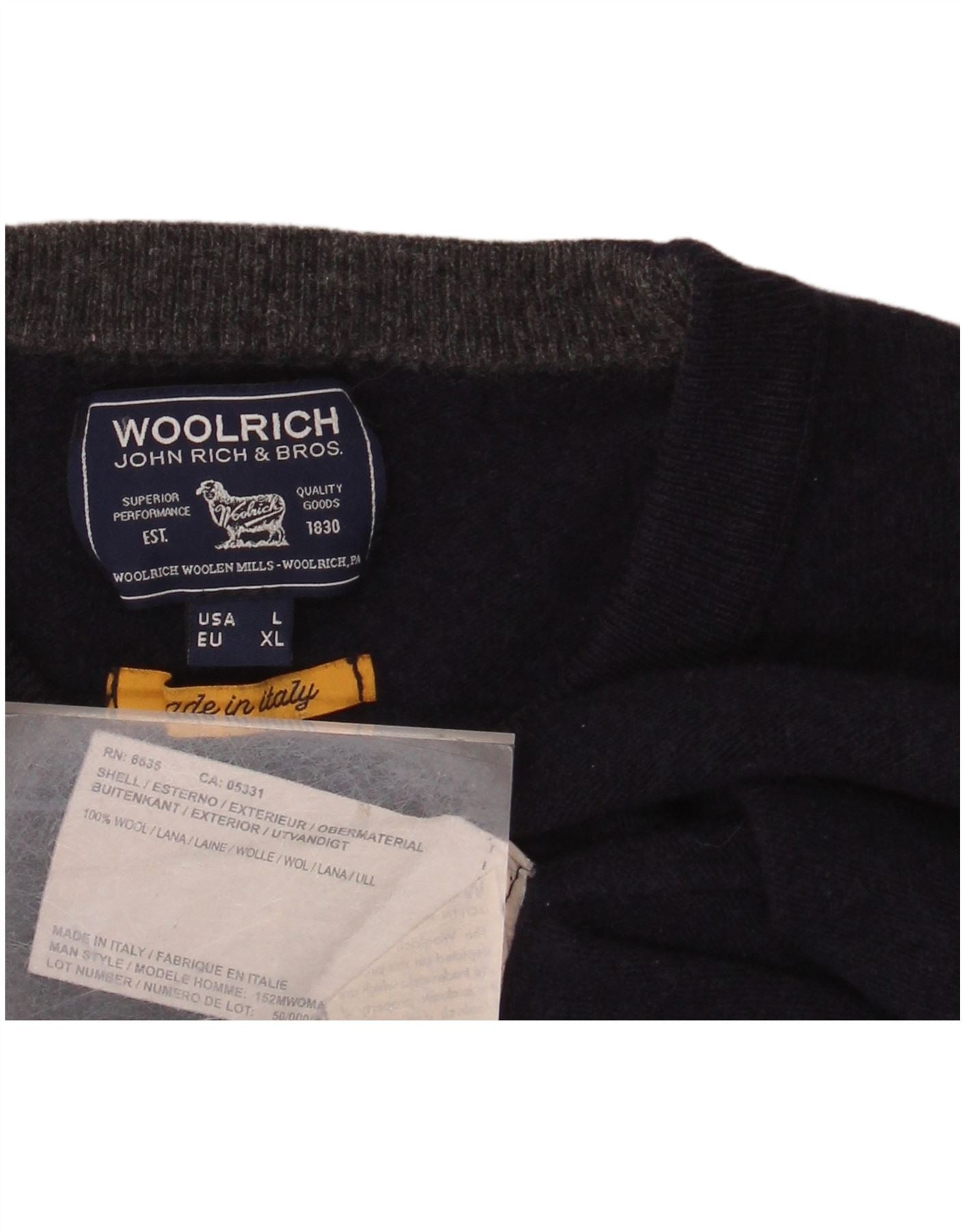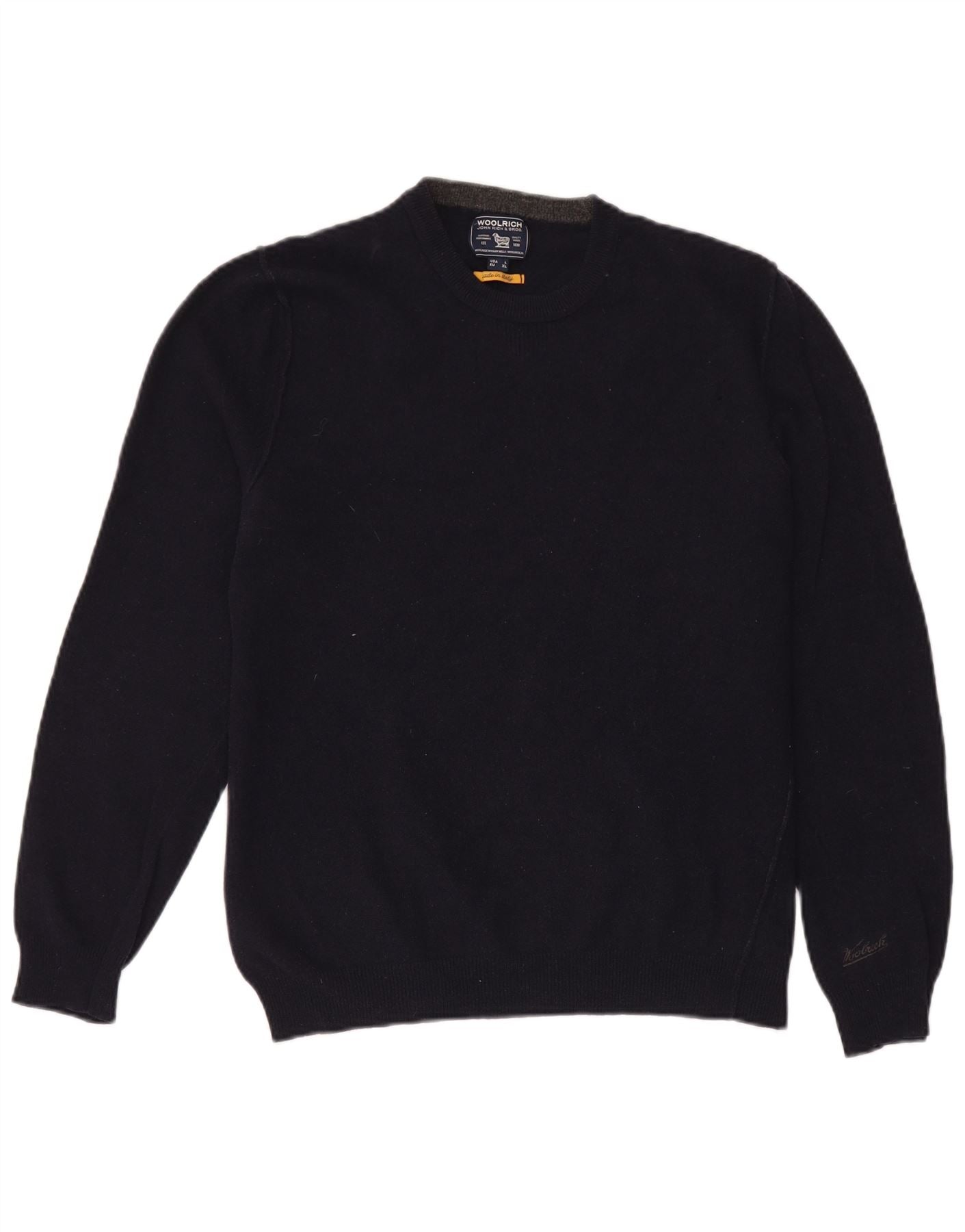 Мужской джемпер WOOLRICH с круглым вырезом, большой темно-синий шерстяной свитер