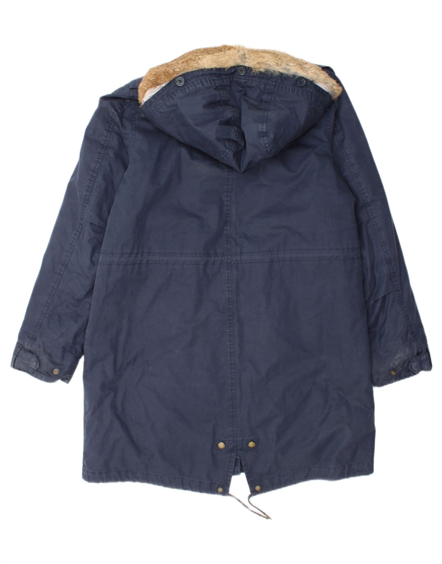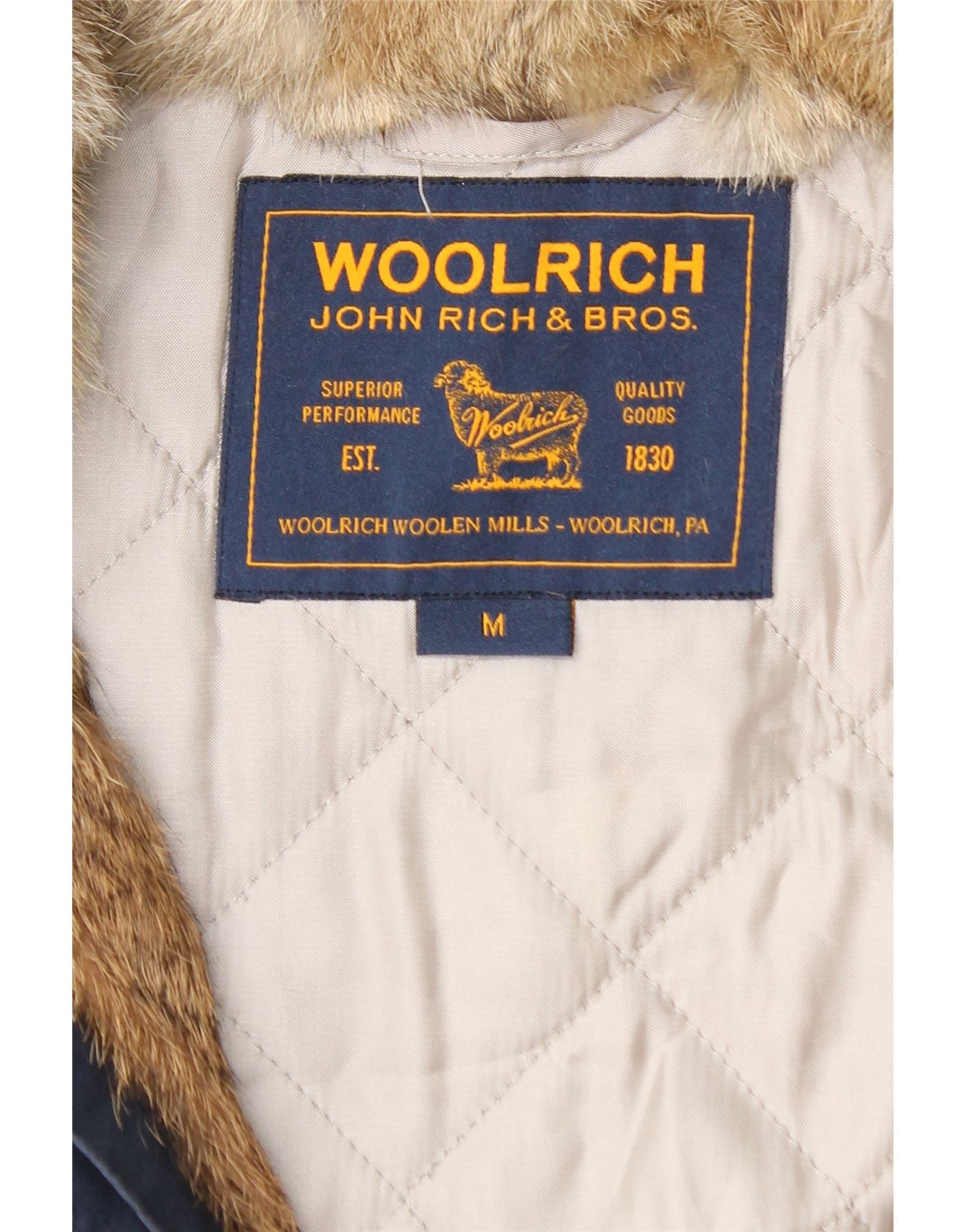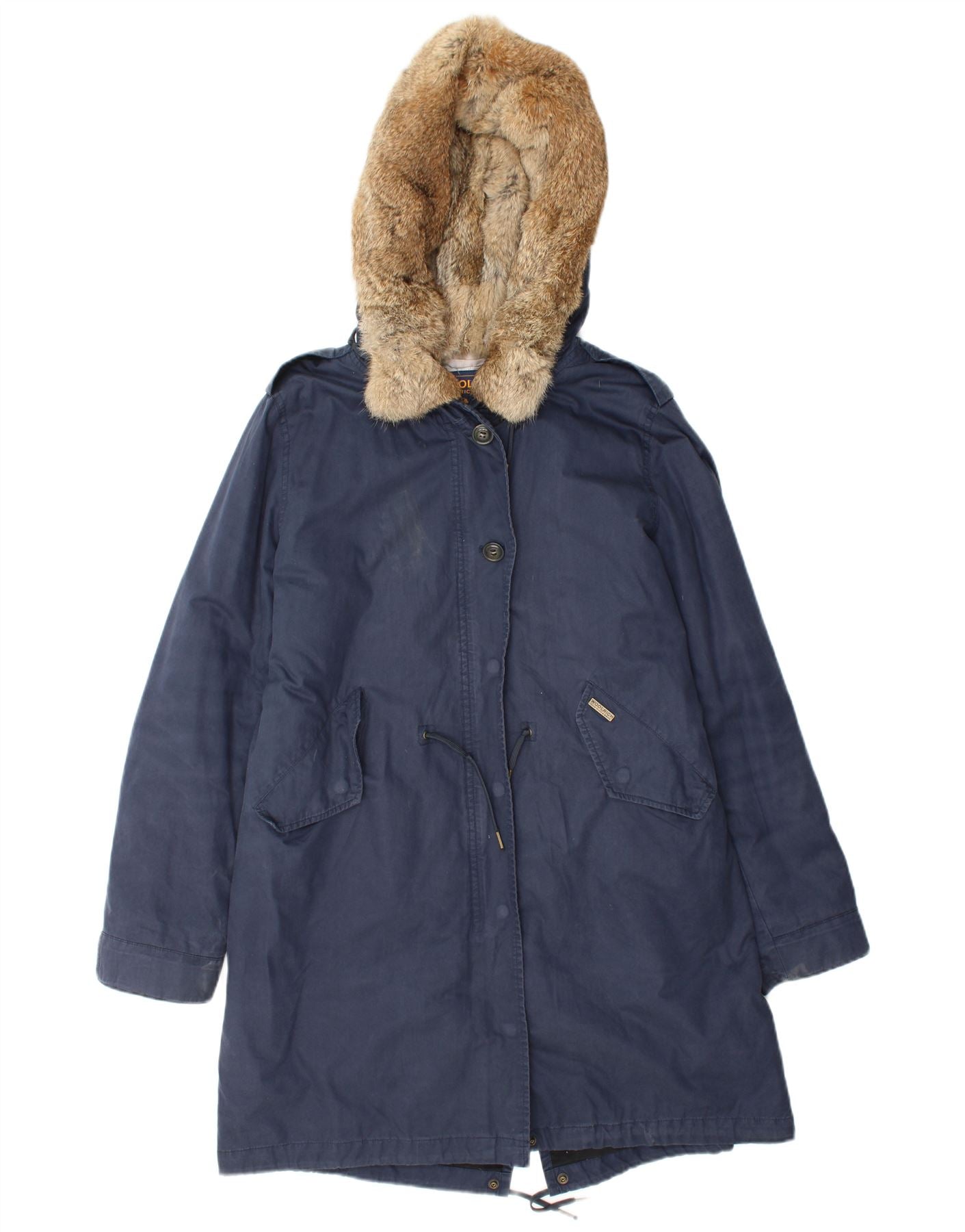 WOOLRICH Womens Hooded Parka Jacket UK 14 Medium Navy Blue Cotton