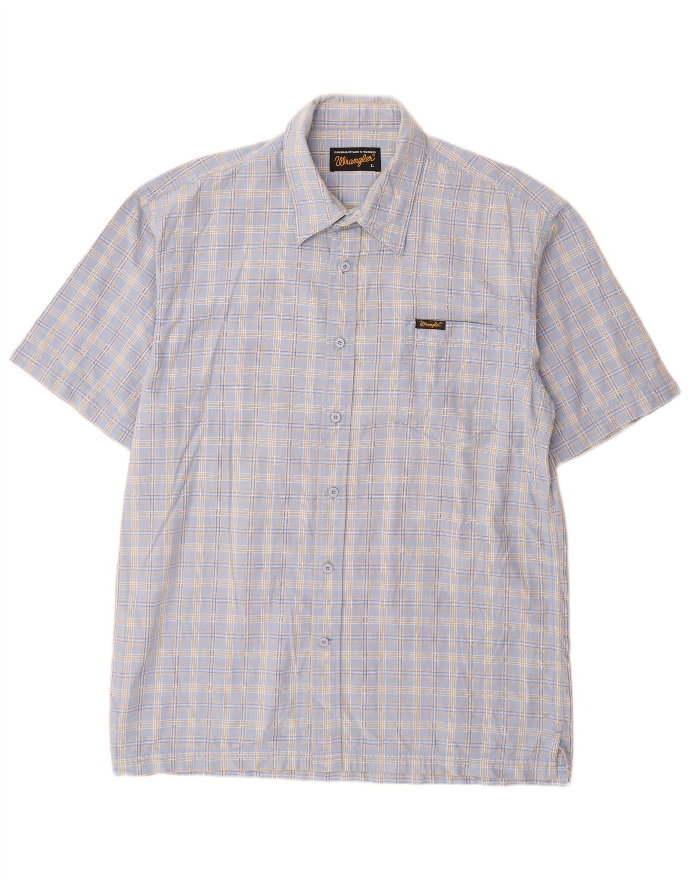 Мужская рубашка с коротким рукавом WRANGLER, большая синяя клетка, хлопок