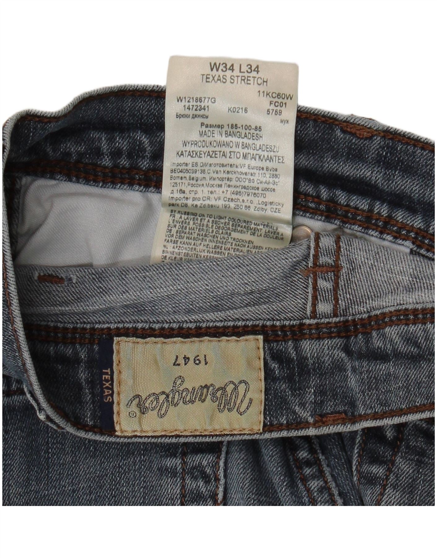 Мужские прямые джинсы WRANGLER техасский стрейч W34 L34, синий хлопок