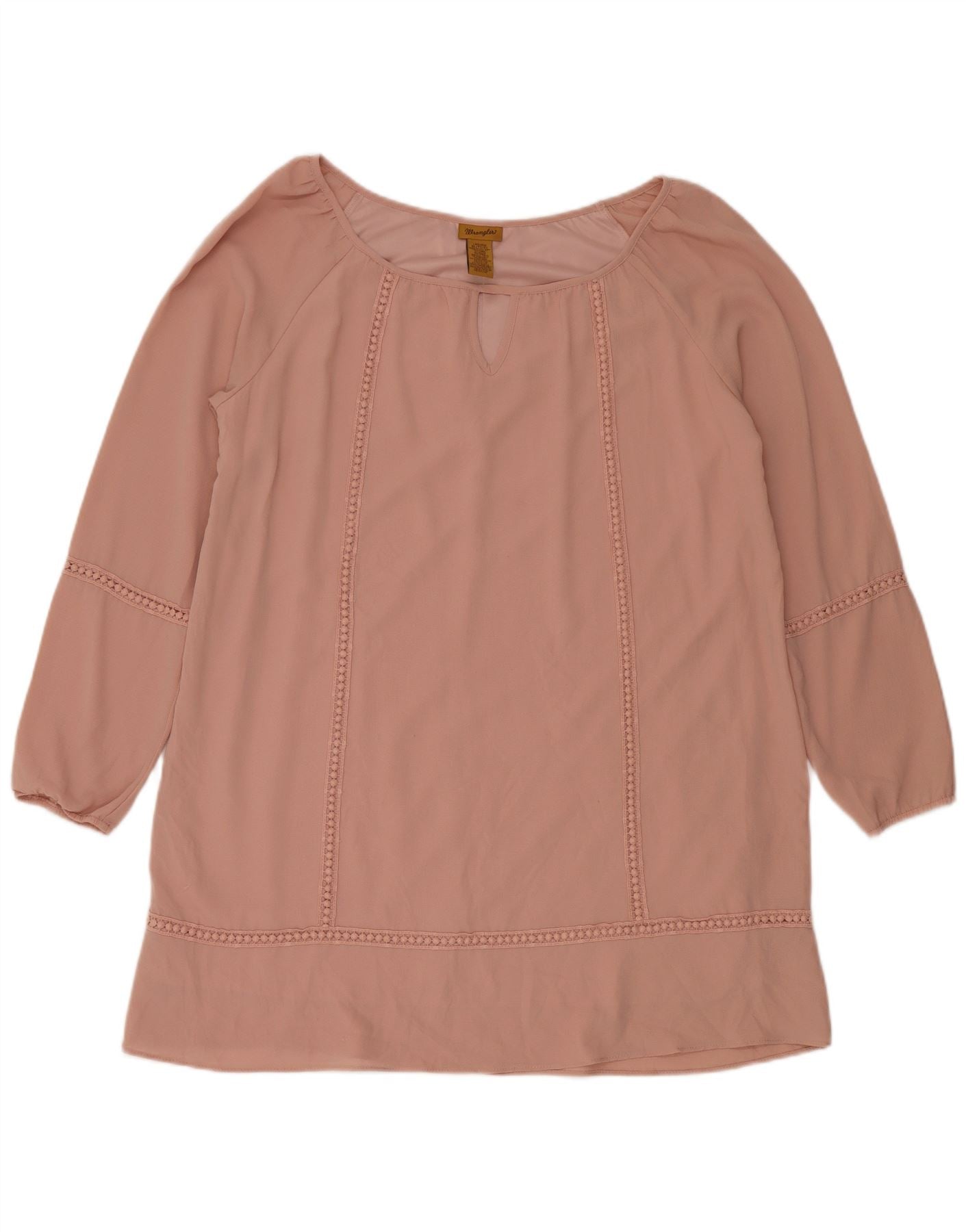 - Описание ИИ: Женский топ-туника Wrangler выполнен из смеси полиэстера и шифона нежно-розового цвета. Туника свободного кроя с круглым вырезом и изящной каплевидной деталью. Рукава длиной 3/4 дополнены манжетами, что придает изделию аккуратный вид. Нежная отделка, связанная крючком, украшает переднюю часть и подол, подчеркивая богемный стиль. Этот пуловер на подкладке предлагает комфорт и непринужденную элегантность.