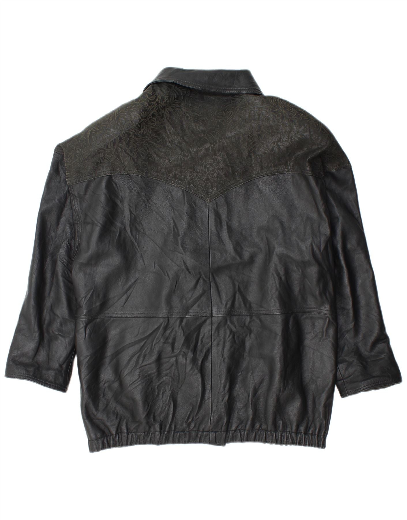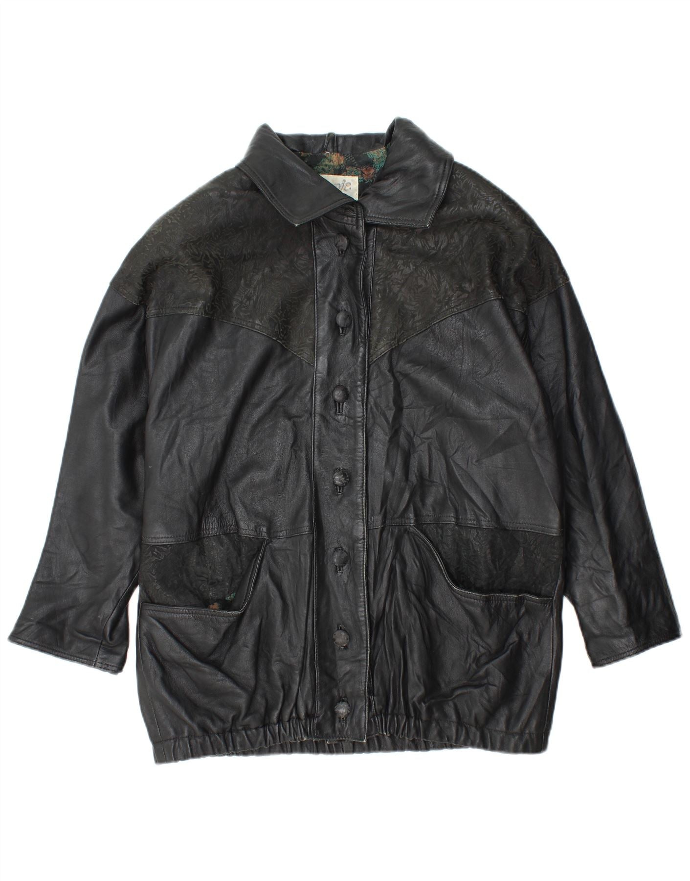 Женская кожаная куртка оверсайз YUPPIE UK 18 XL, черная с цветочным принтом
