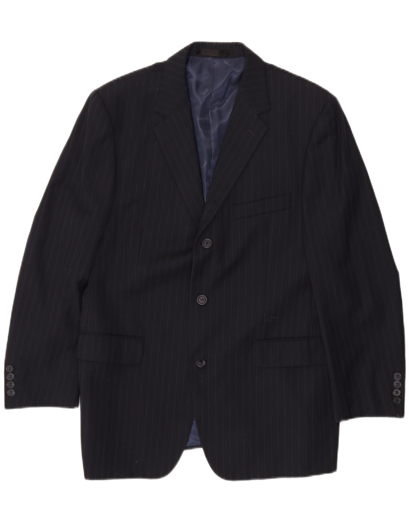 YVES SAINT LAURENT Mens Blazer Jacket UK 38 Medium Black Pinstripe