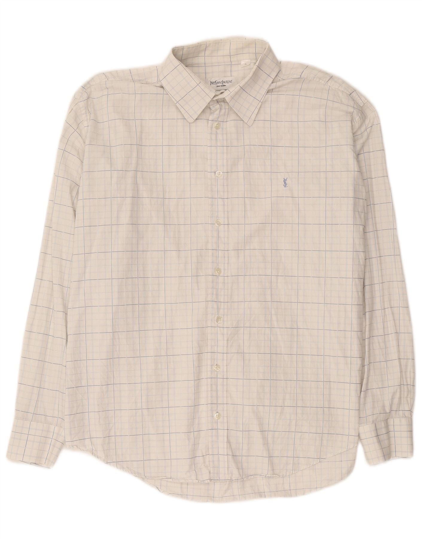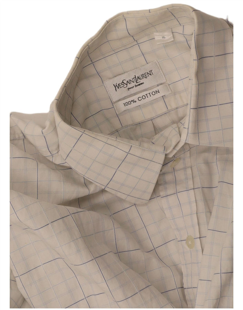 YVES SAINT LAURENT Mens Shirt XL White Check Cotton
