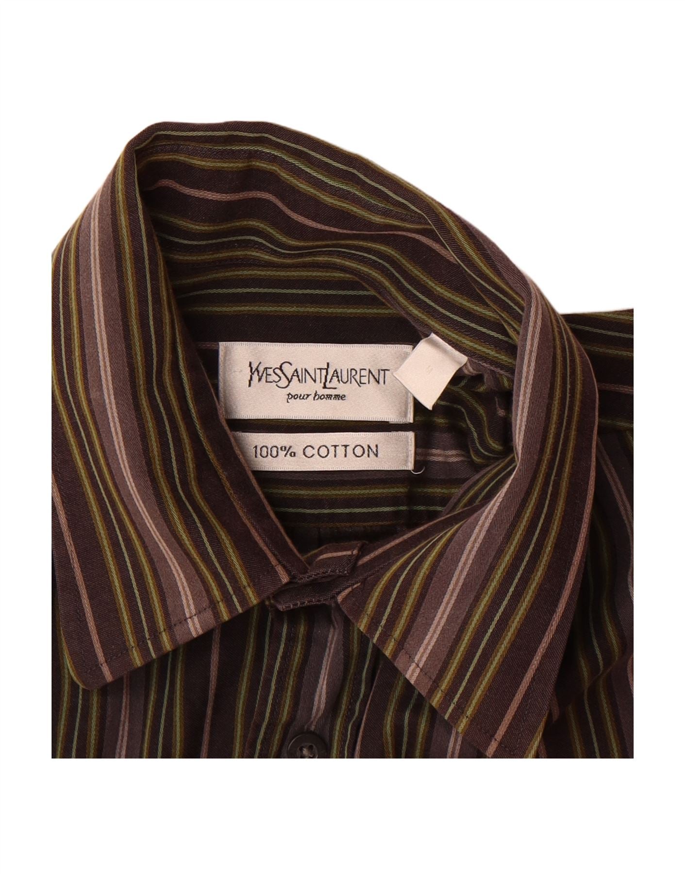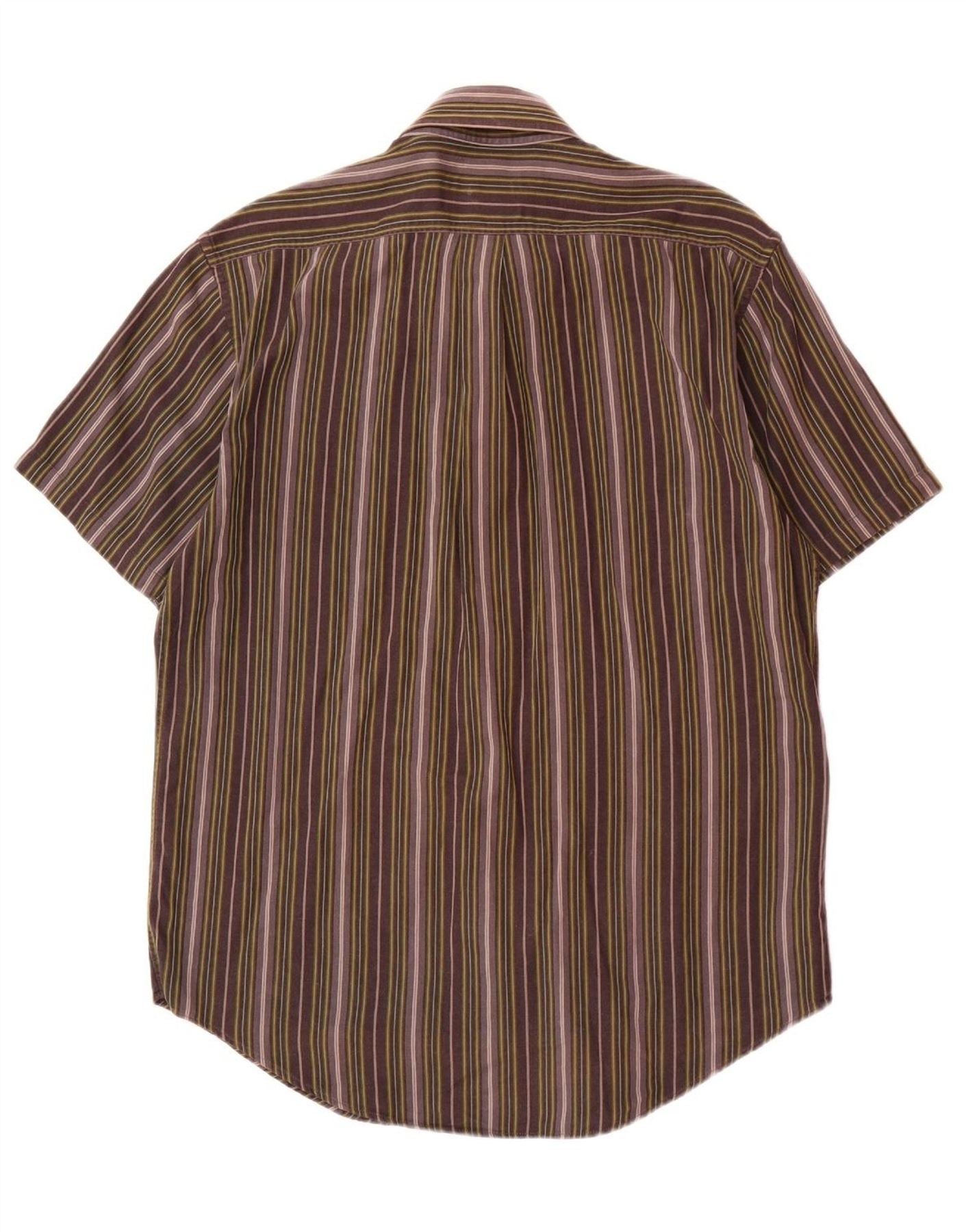 YVES SAINT LAURENT Mens Short Sleeve Shirt Medium Purple Striped Cotton