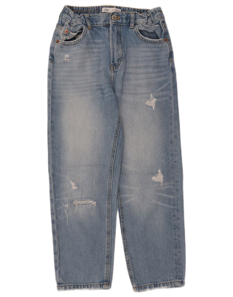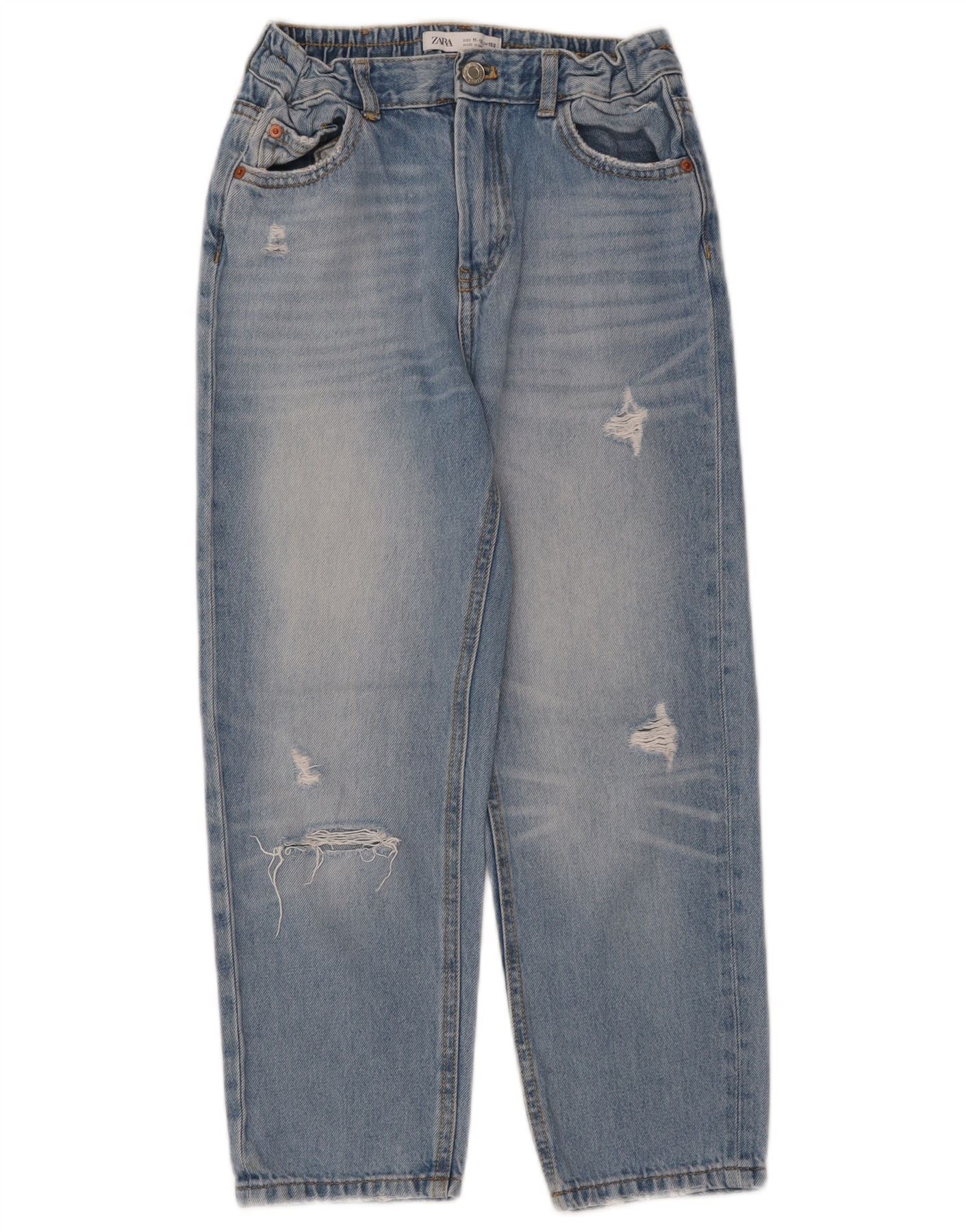 ZARA Girls Distressed Tapered Jeans 11-12 Years W24 L23 Blue Cotton