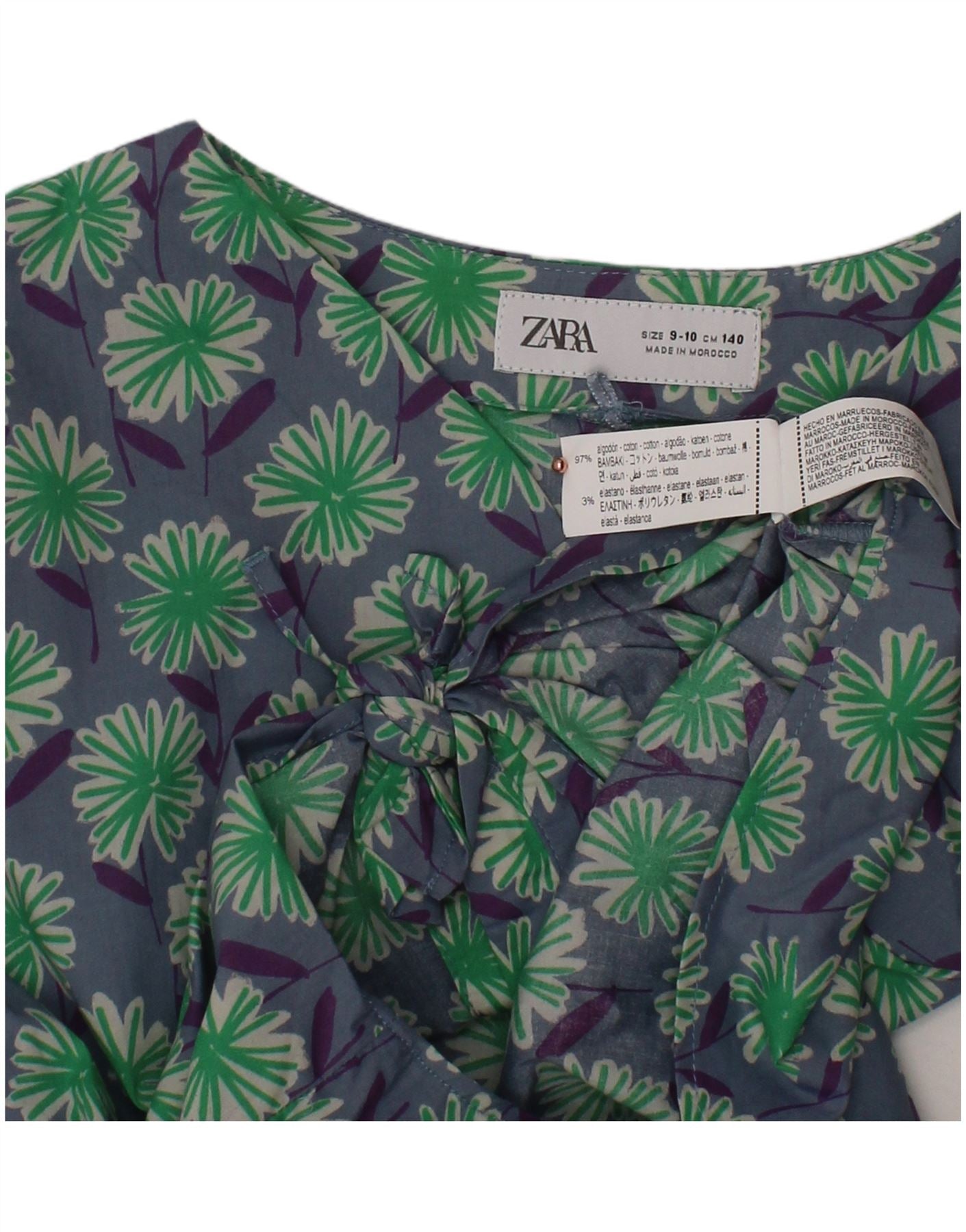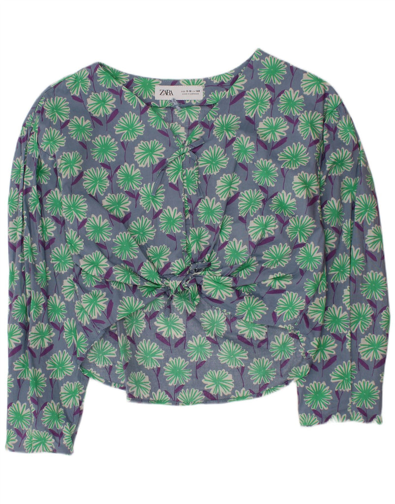 Блузка-рубашка ZARA для девочек 9–10 лет, зеленый хлопок с цветочным принтом