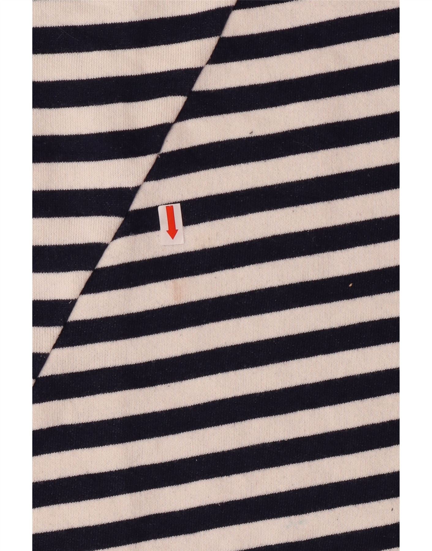 - Описание ИИ: Джемпер с круглым вырезом для девочек Zara выполнен из мягкой трикотажной ткани. Он имеет классический полосатый узор темно-синего и кремового цвета. Круглый вырез горловины и длинные рукава обеспечивают удобную и свободную посадку. Ребристые манжеты и подол создают аккуратный вид. Тонкий диагональный шов добавляет современности дизайну. Небольшой фирменный логотип завершает образ, создавая стильную и уютную одежду для повседневного ношения.
