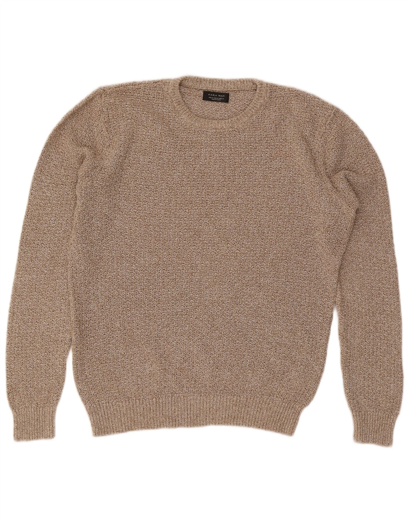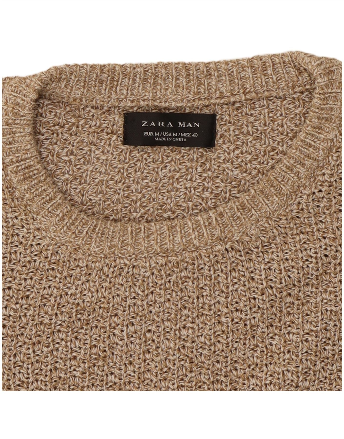 Мужской джемпер с круглым вырезом Zara, средний бежевый в крапинку
