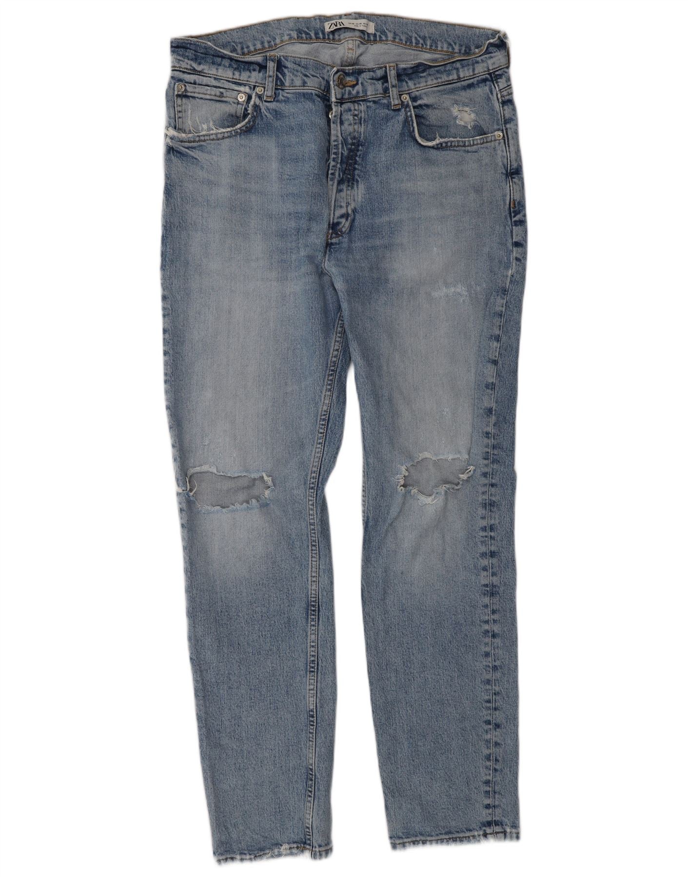 Мужские потертые узкие джинсы ZARA EU 46 XL W36 L30 синие