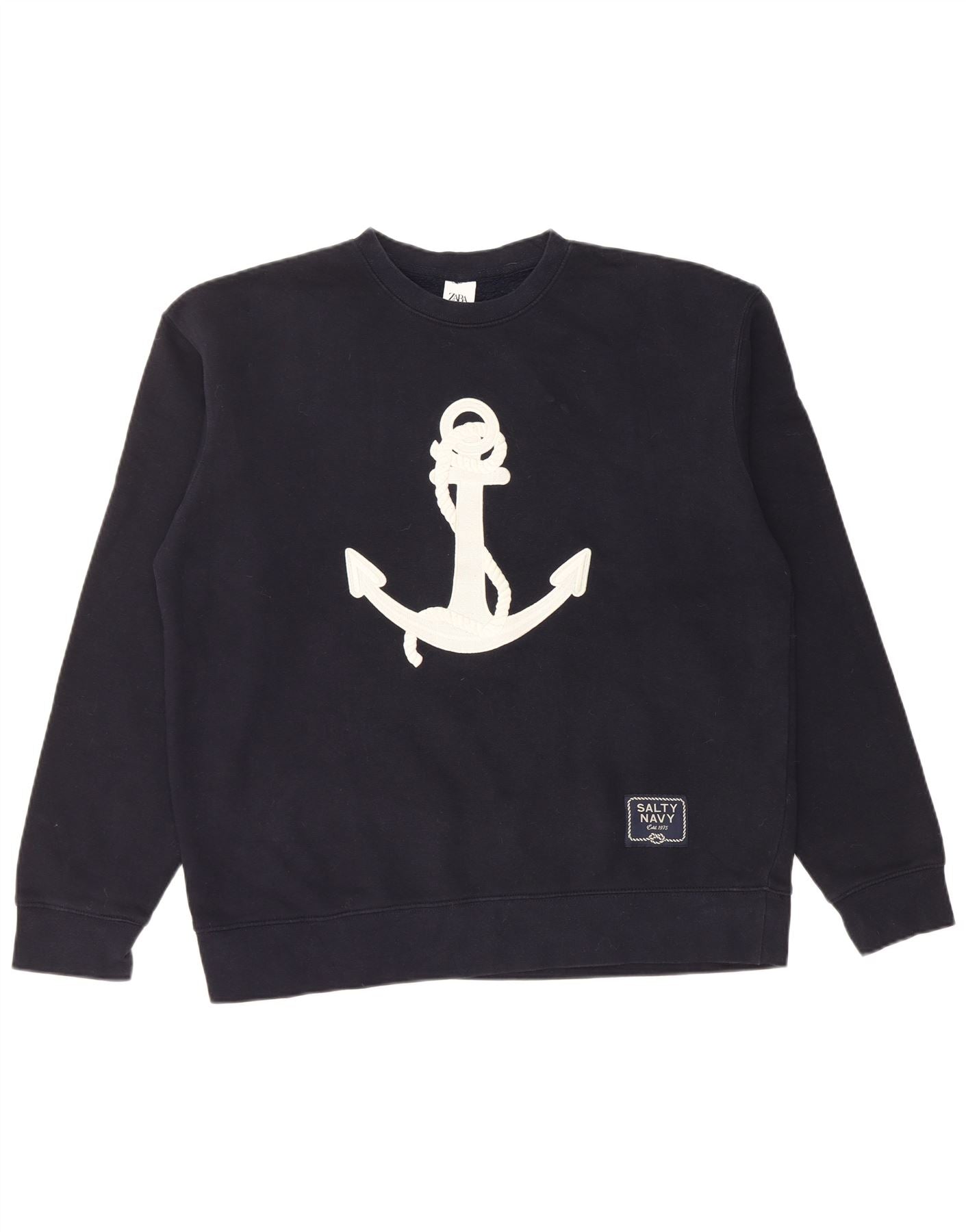 Мужской свитшот с рисунком Zara, большой хлопковый джемпер темно-синего цвета в морском стиле