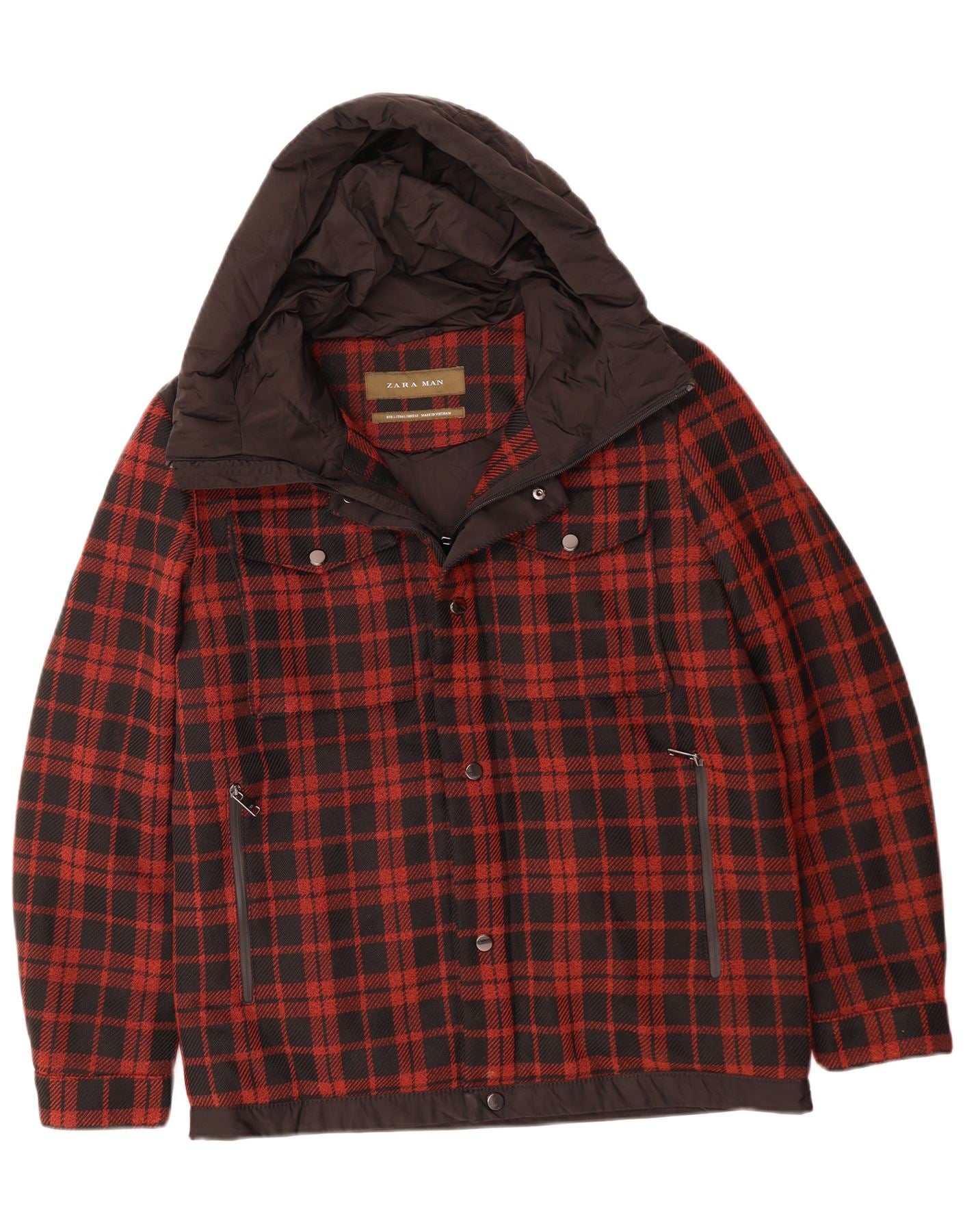 Мужская куртка-бомбер ZARA UK 40, полиэстер в красную клетку, большой размер