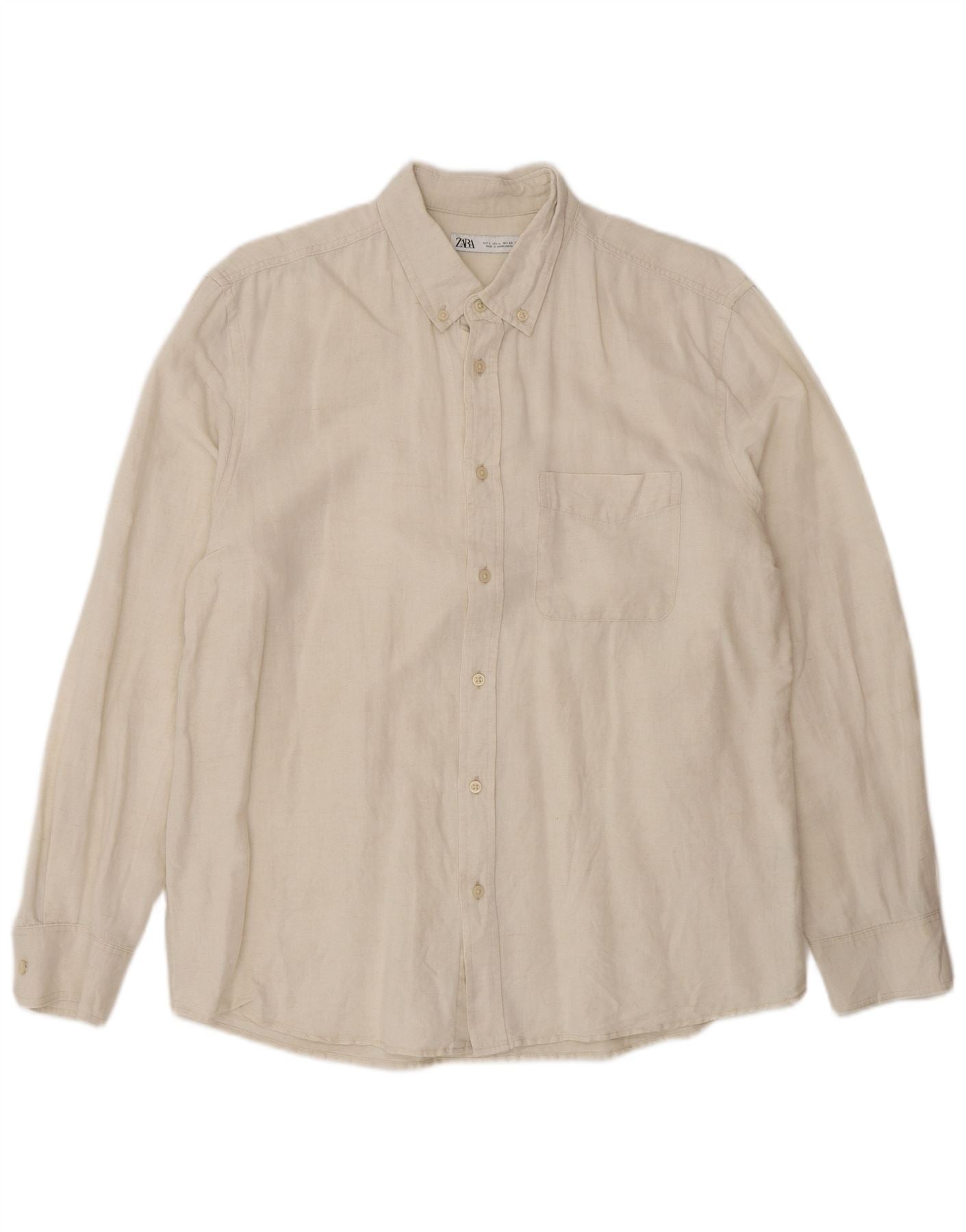 - Описание ИИ: Эта мужская рубашка Zara изготовлена из легкой смеси льна и хлопка, обеспечивающей воздухопроницаемость и текстуру, в универсальном бежевом оттенке. Имеет классический вырез горловины и застежку на пуговицы спереди. Длинные рукава заканчиваются манжетами на пуговицах. Один нагрудный карман добавляет практичности. Регулярная посадка обеспечивает комфортное ношение. Тональные пуговицы создают изящный, цельный вид.
