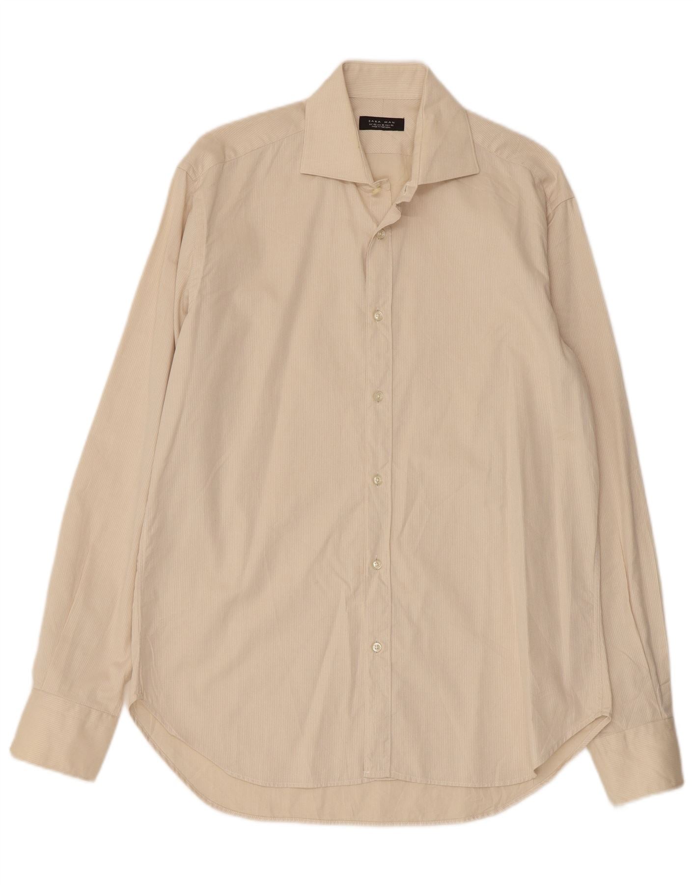 Мужская рубашка ZARA, размер 42, большая бежевая хлопковая полоска в тонкую полоску