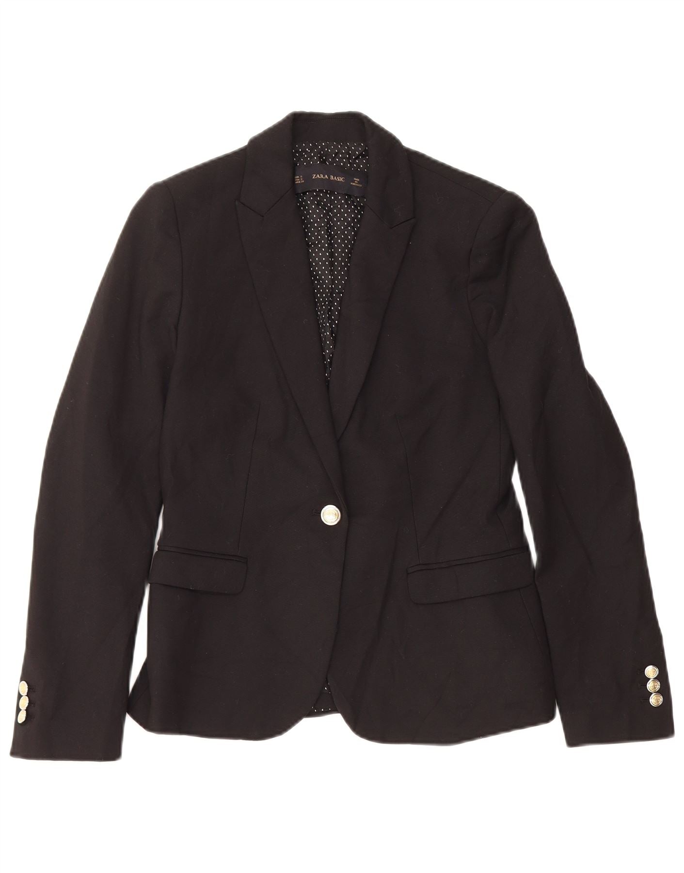 Женский пиджак Zara на 1 пуговице, Великобритания, 10 маленьких размеров, черный хлопок