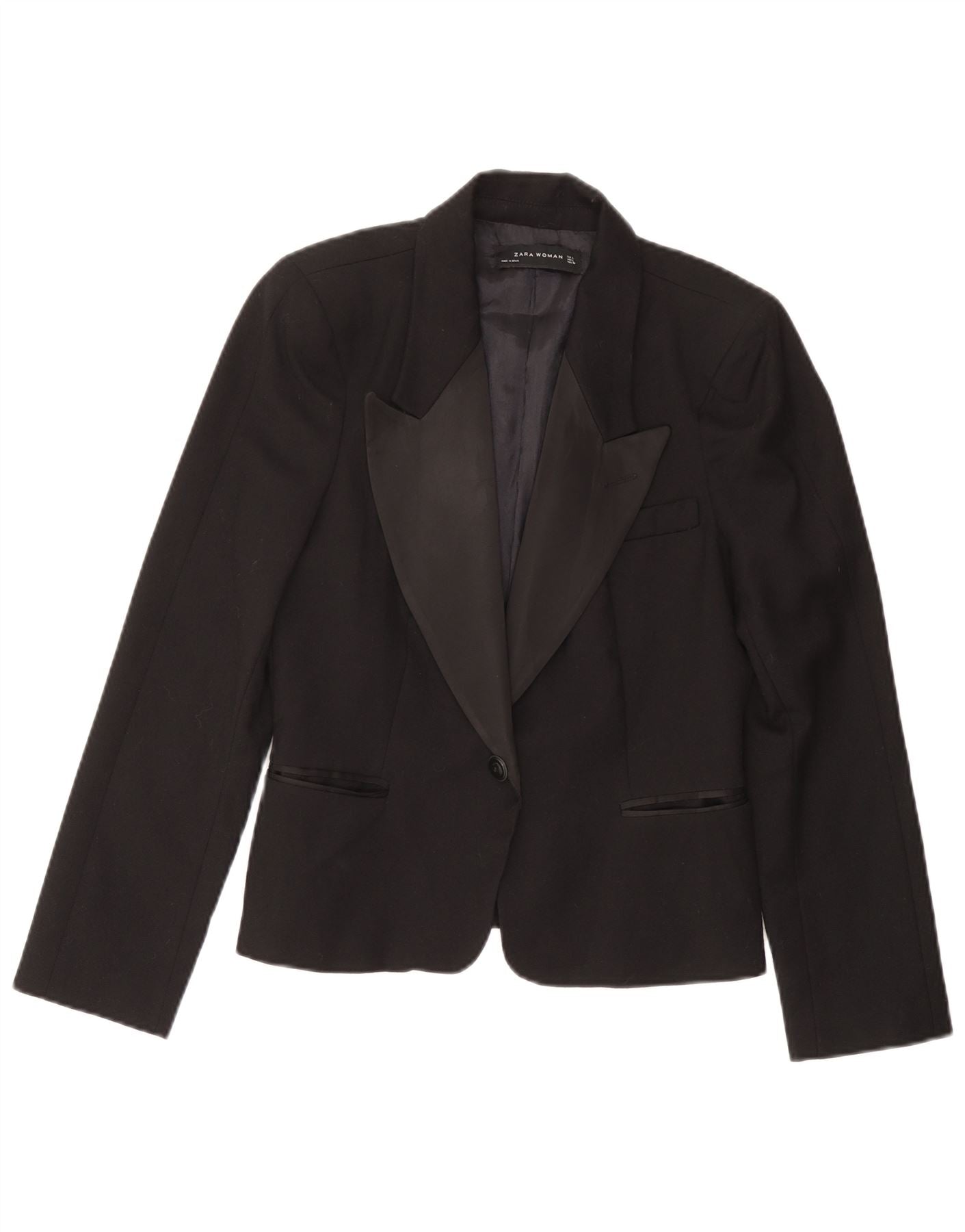Женский пиджак на 1 пуговице Zara UK 16, большой черный шерстяной пиджак