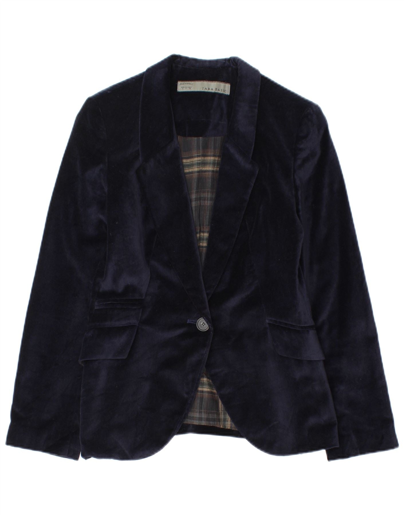 Home > Женский > Депоп Одежда > Женский бархатный пиджак Zara на 1 пуговице, Великобритания, 8, маленький, темно-синий, хлопковый