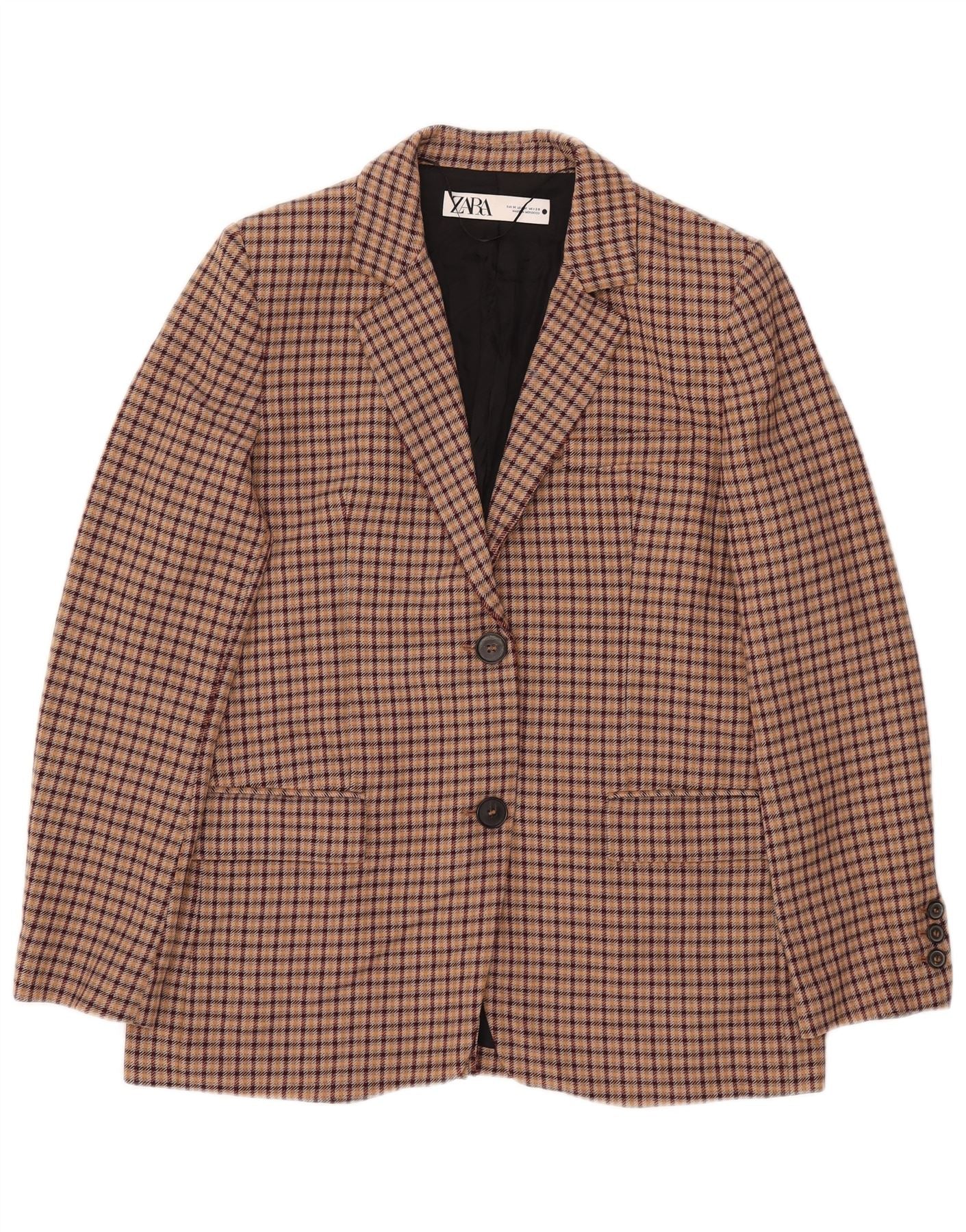 Женский пиджак ZARA на 2 пуговицах UK 14, средний коричневый вискоза в клетку