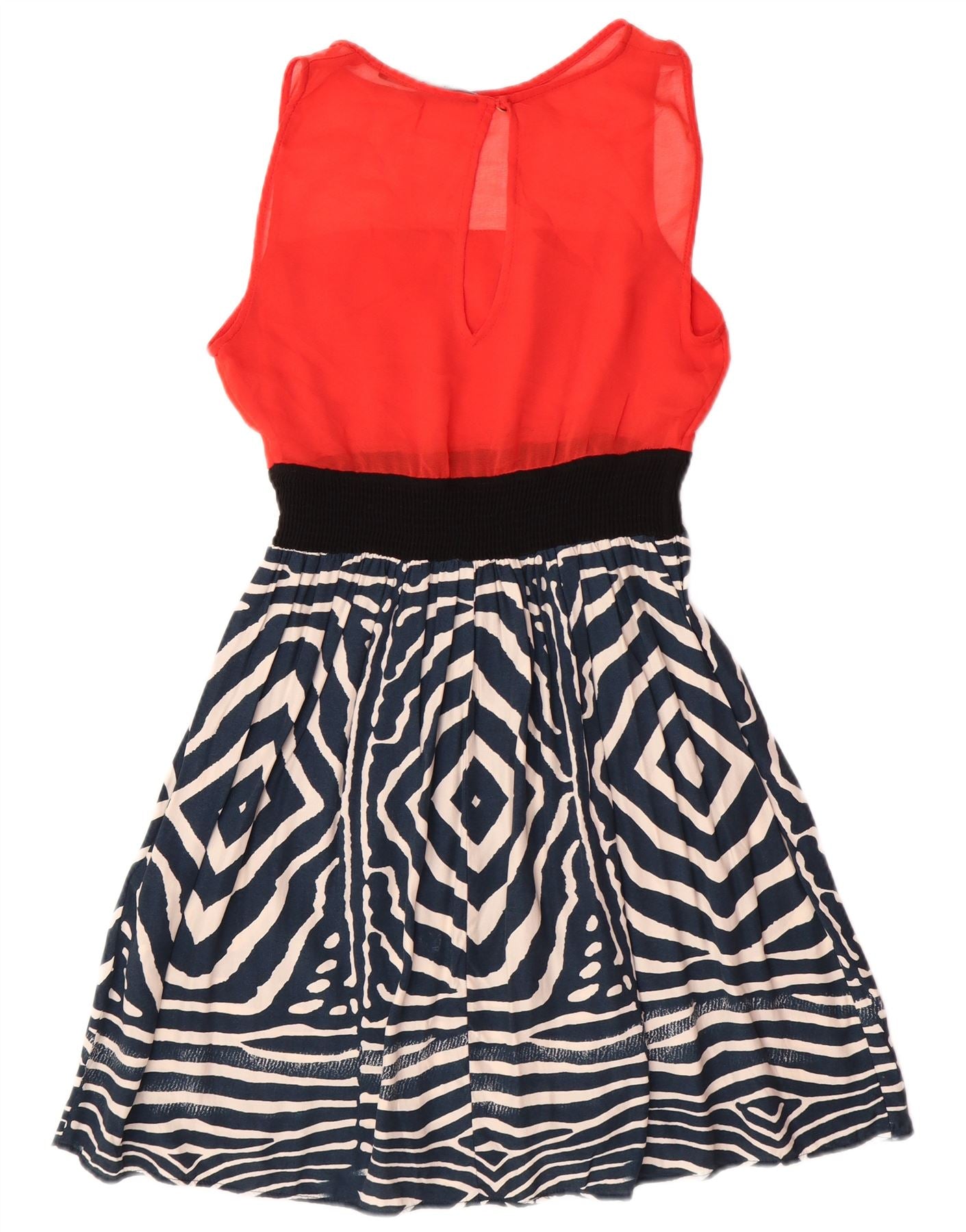 Женское базовое платье трапециевидного силуэта без рукавов Zara UK 12, средний красный с геометрическим рисунком в стиле модерн