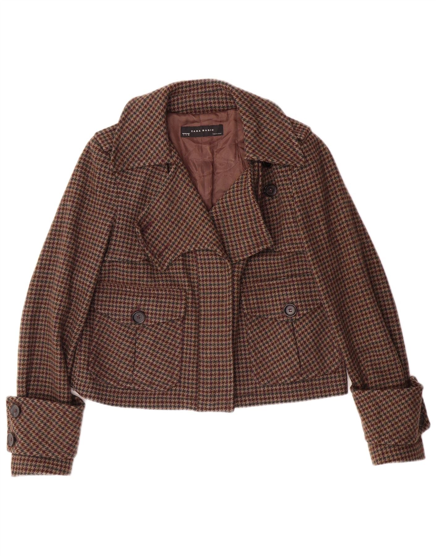 Home > Женский > Депоп Одежда > Женский бомбер ZARA UK 8, маленький, коричневый, шерсть с узором «гусиные лапки»