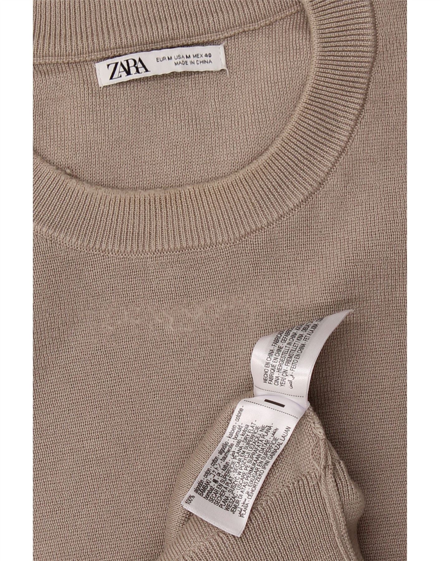 Женский джемпер с круглым вырезом ZARA UK 14, хлопковый средний серый цвет