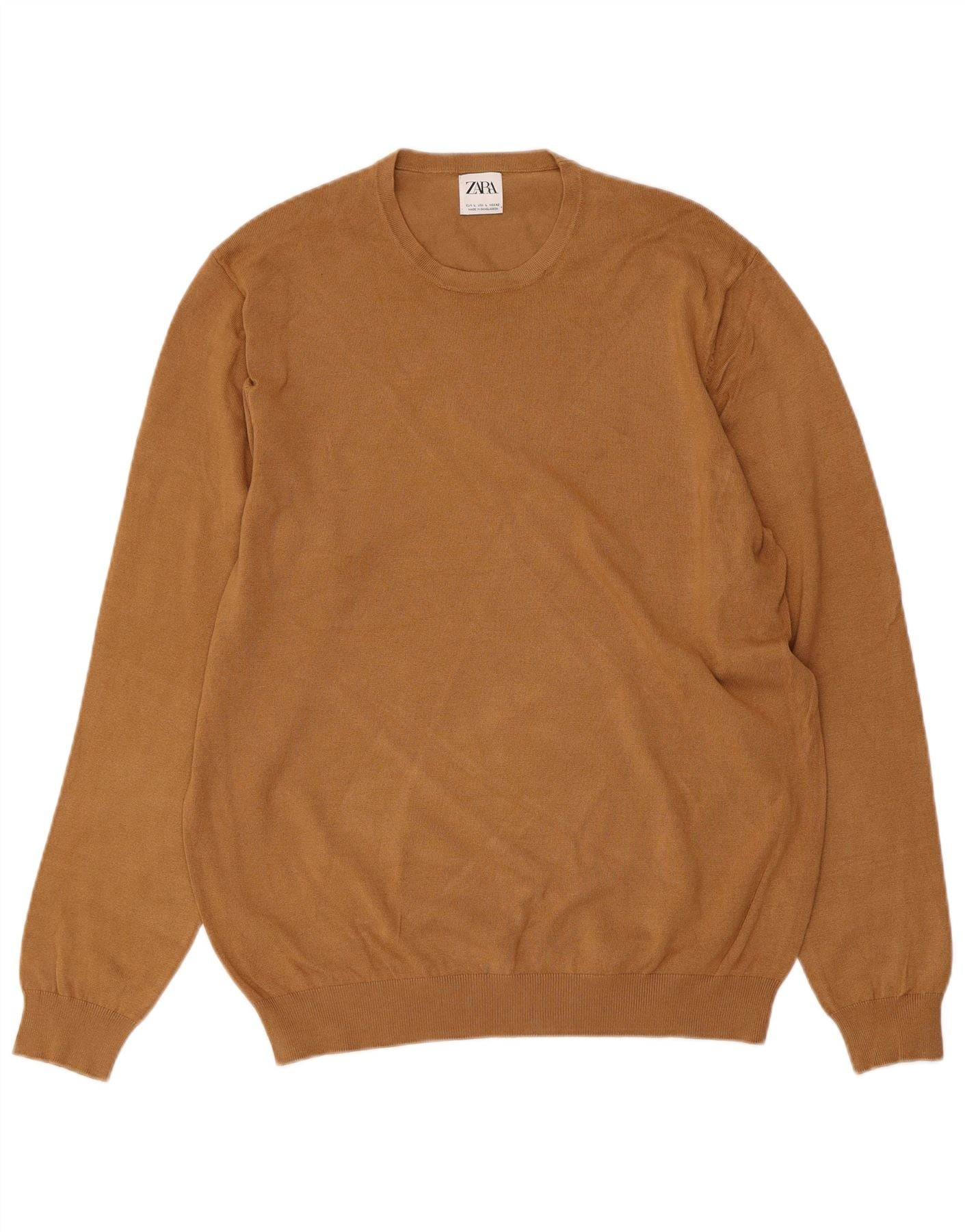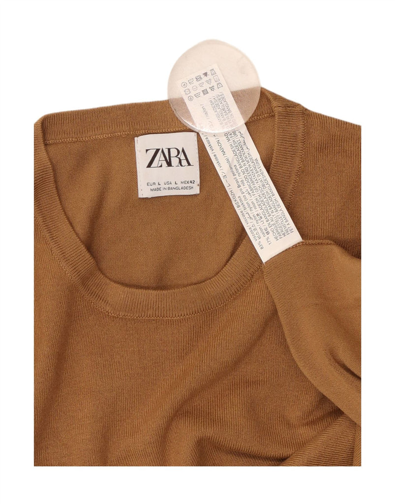 Женский джемпер с круглым вырезом ZARA UK 16, большой размер, бежевый, вискоза