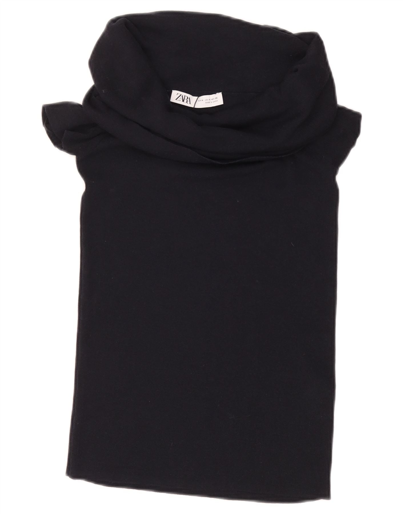 Женская укороченная блузка ZARA UK 12, средний черный, вискоза