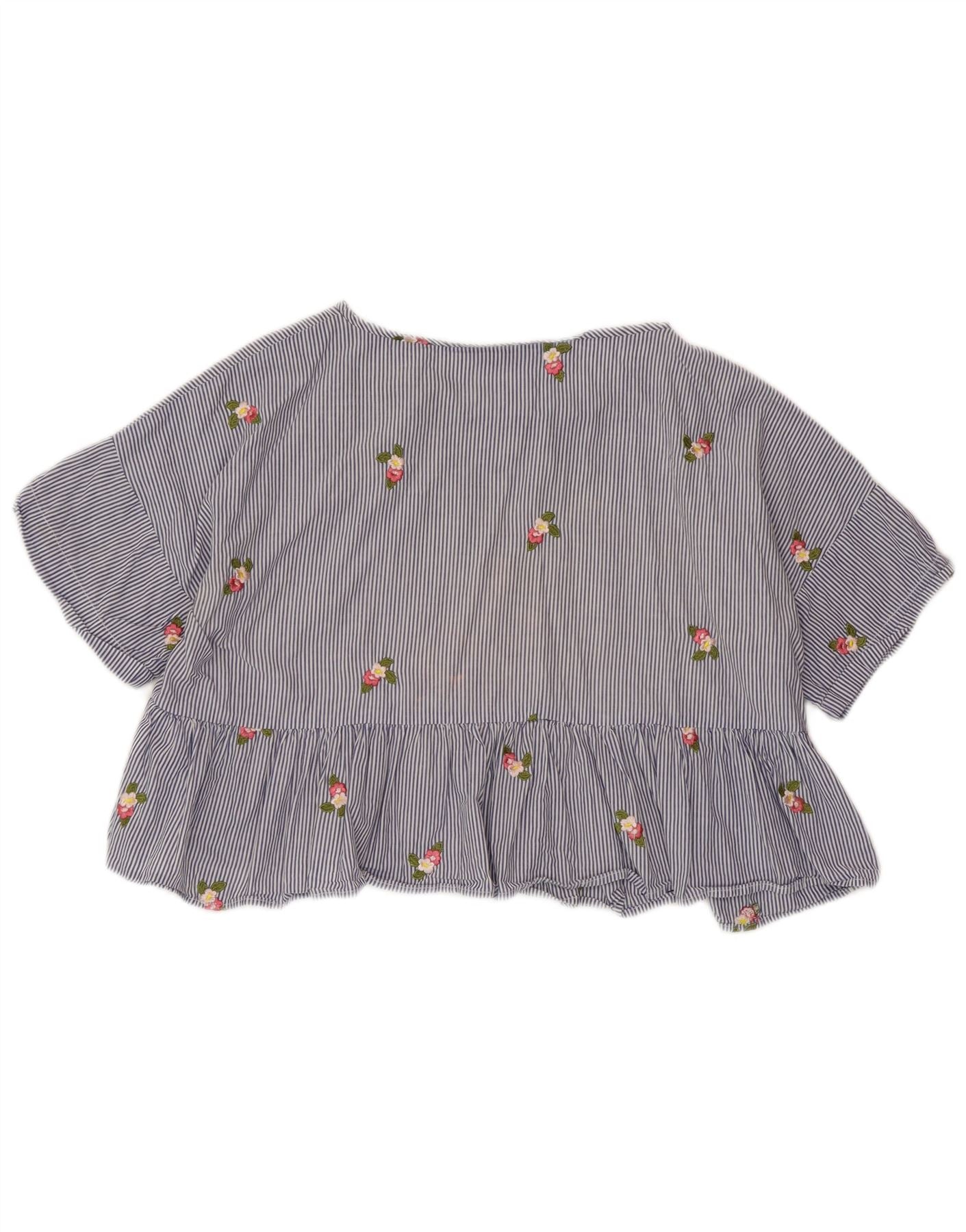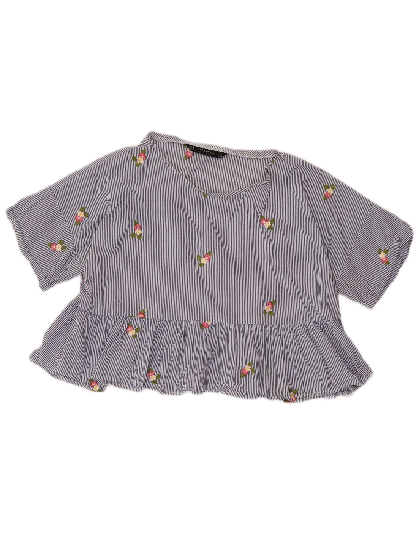 Женская укороченная блузка ZARA UK 14, средний синий в тонкую полоску