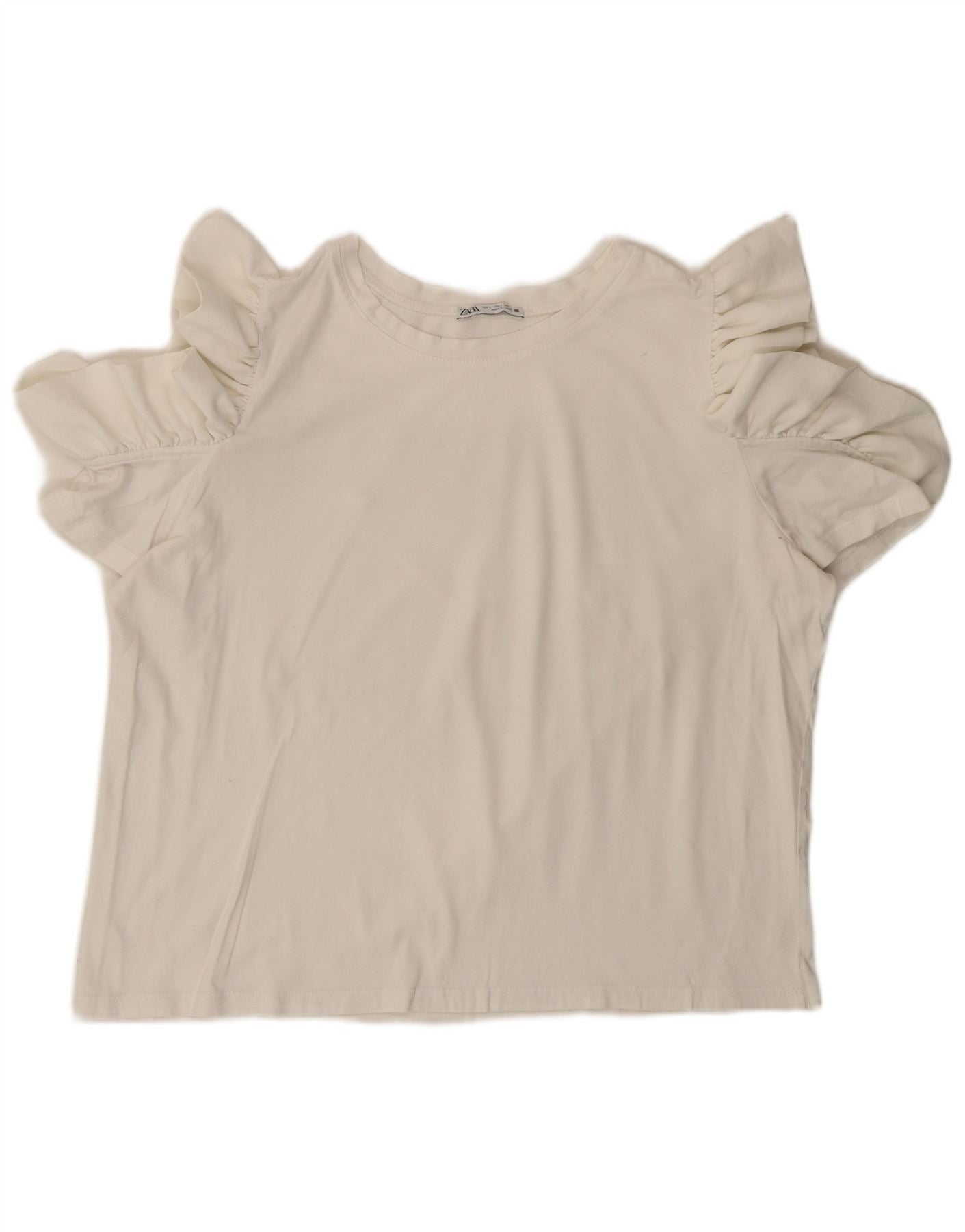 - Описание ИИ: Женский топ-футболка Zara изготовлен из мягкого джерси белого цвета. Имеет классический круглый вырез и удобную стандартную посадку. Короткие рукава украшены изящными рюшами, придающими изделию современный и женственный вид. Этот пуловер обеспечивает непринужденность и комфорт и идеально подходит для повседневной элегантности.