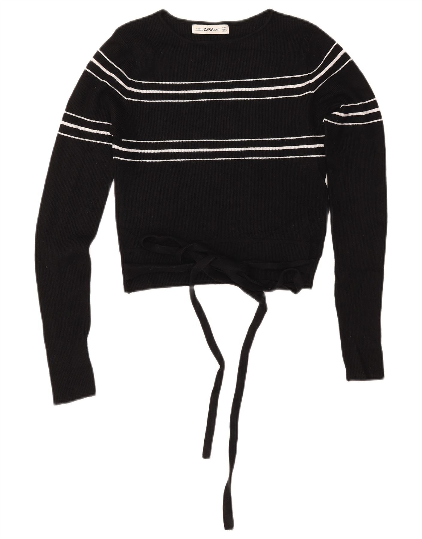 Женский укороченный свитер с вырезом «лодочка» ZARA UK 12, средний черный в полоску