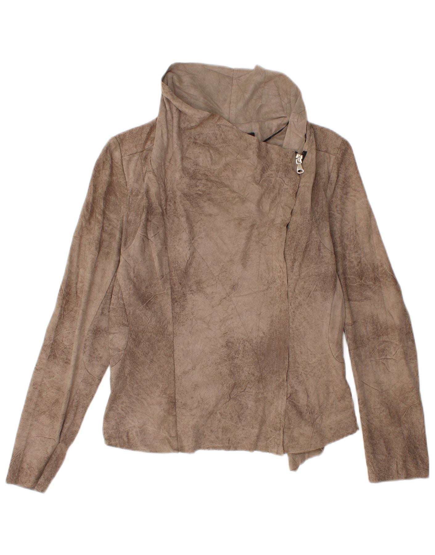 Женская укороченная куртка-бомбер ZARA UK 14, большой размер, коричневый, полиэстер тай-дай
