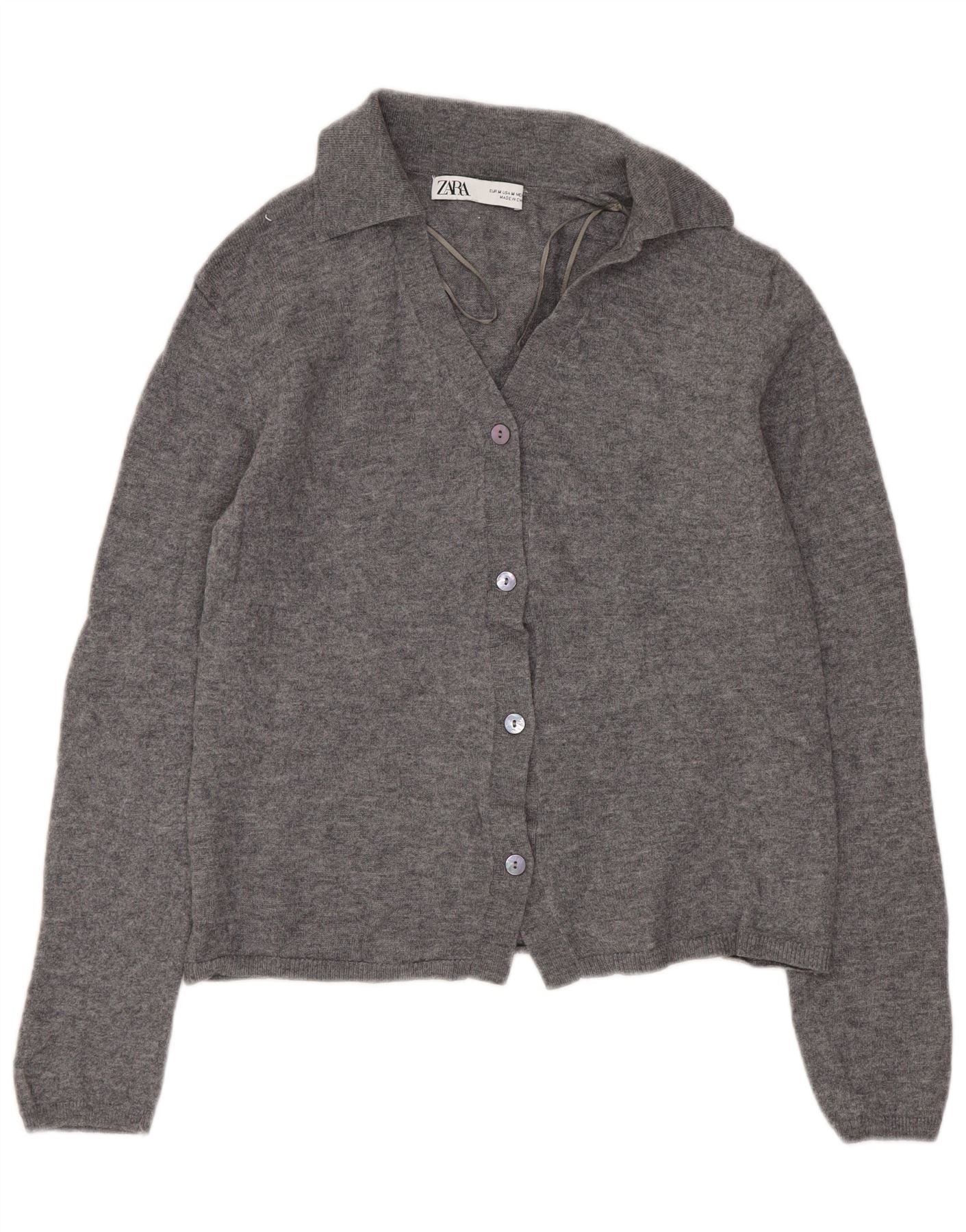 Женский укороченный кардиган ZARA UK 12, средний серый цвет