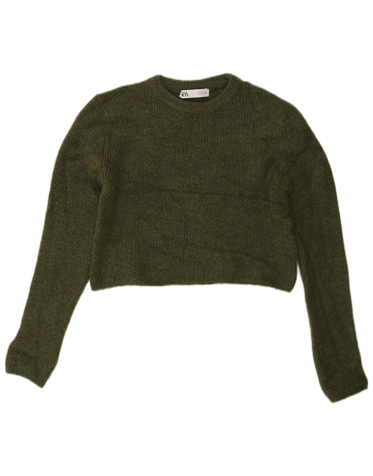 Женский укороченный джемпер с круглым вырезом ZARA UK 8, маленький зеленый акрил