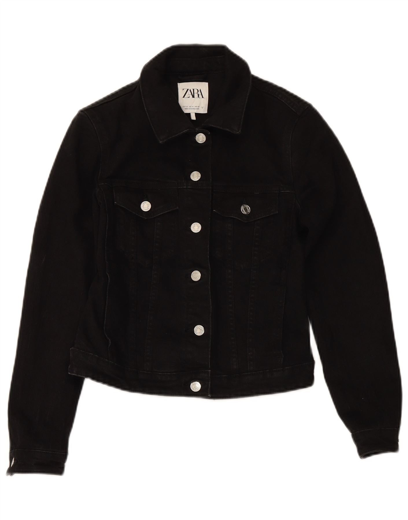 Женская укороченная джинсовая куртка ZARA UK 10, маленькая, черный хлопок