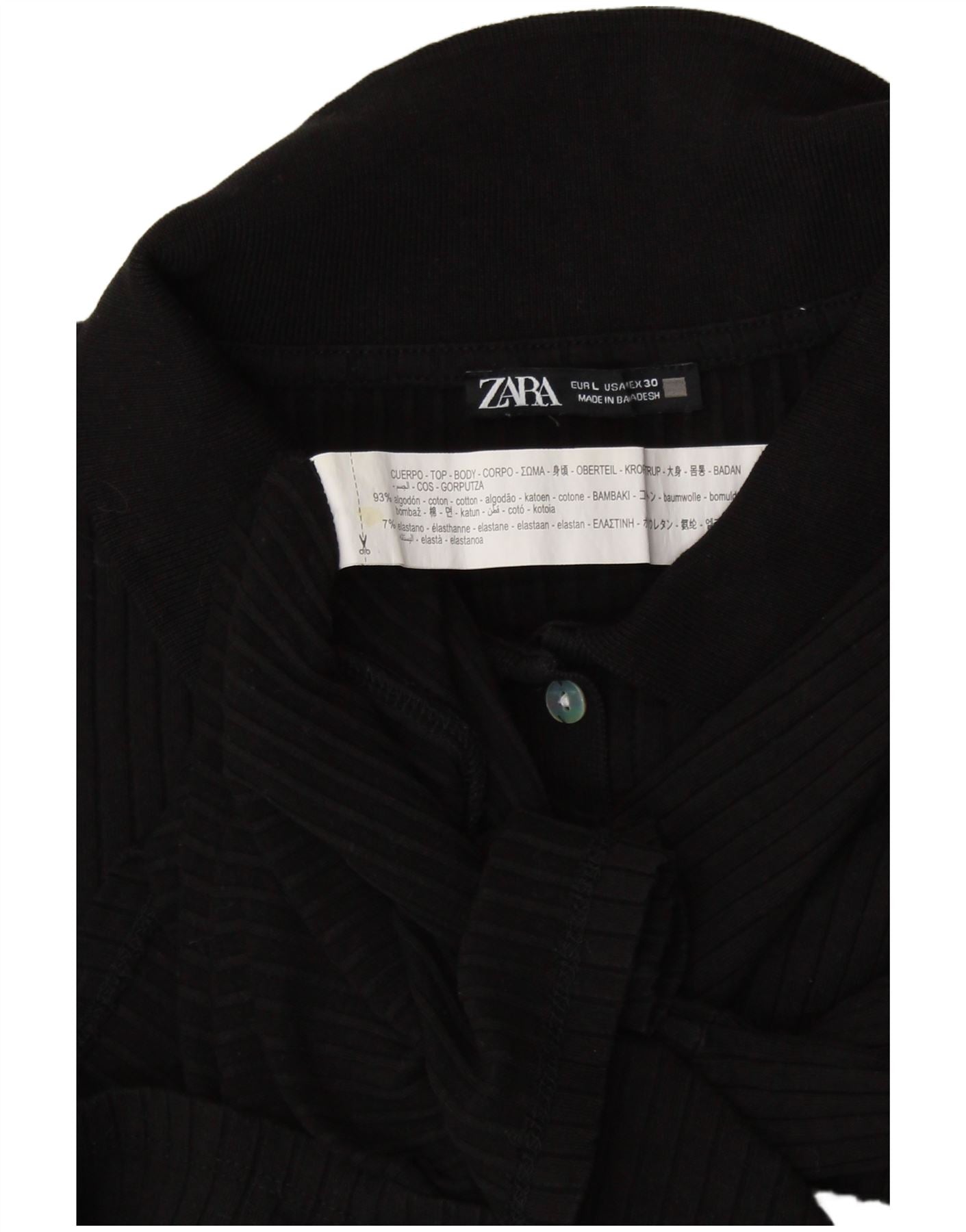 Женская укороченная рубашка поло с длинным рукавом ZARA UK 14, большой черный хлопок