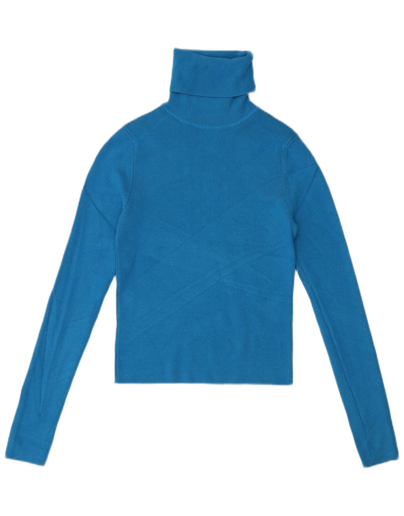 Женский укороченный джемпер с высоким воротником ZARA UK 12, вискоза, средний синий цвет