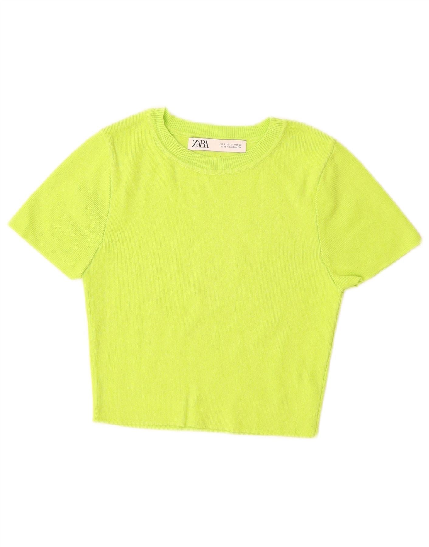 Женский укороченный джемпер с вырезом «лодочкой» ZARA, Великобритания, 8, маленький зеленый