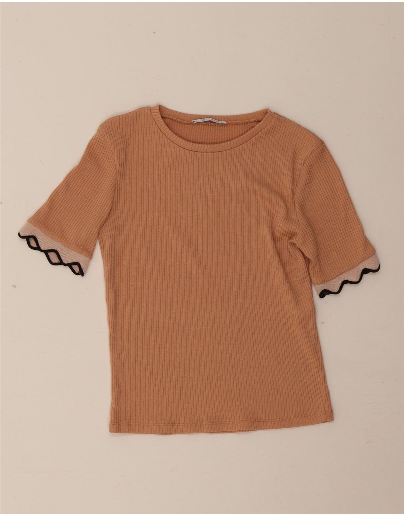 Женская укороченная футболка Zara UK 10, маленький коричневый полиэстер