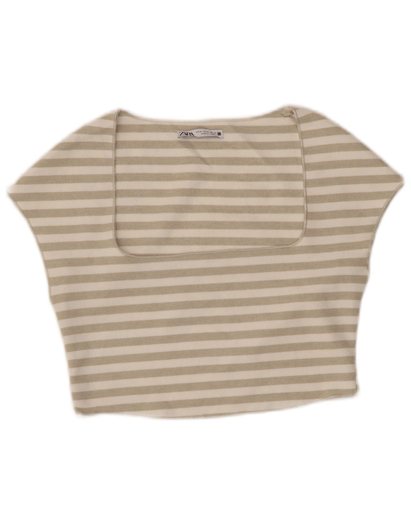 Женский укороченный топ ZARA UK 12, средний цвет в белую полоску