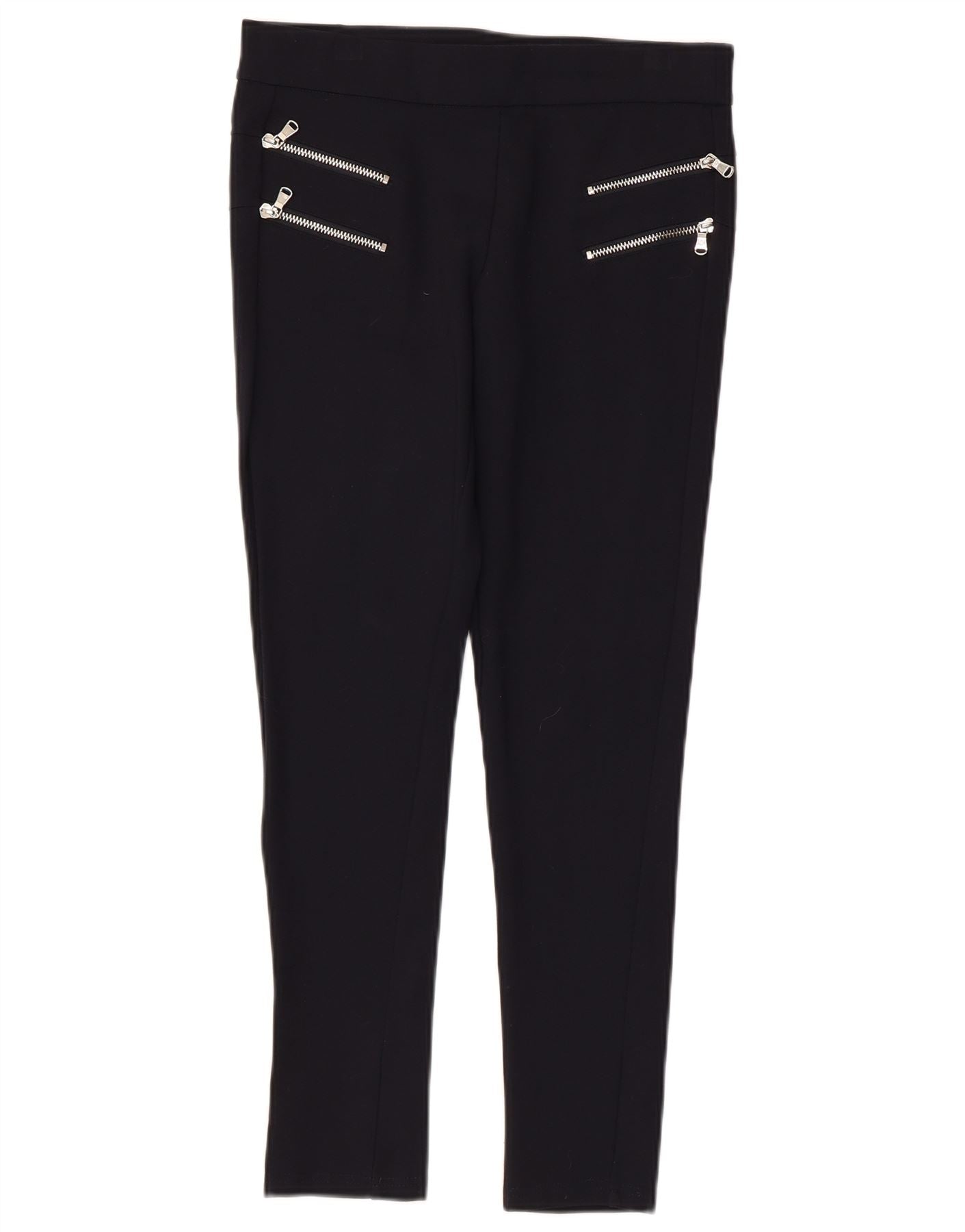 - Описание ИИ: Эти укороченные женские брюки Zara изготовлены из удобного эластичного джерси черного цвета. Они имеют застегивающуюся конструкцию и узкую посадку на леггинсы. Современный байкерский стиль подчеркивается декоративными карманами на молнии спереди. Эти брюки сочетают в себе комфорт и элегантный современный силуэт, идеально подходящие для универсального стиля.