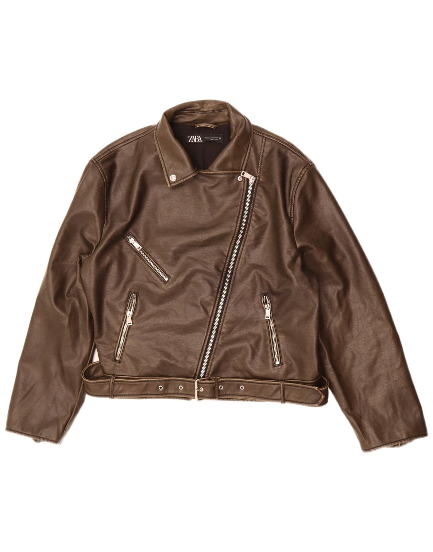Home > Винтажные кожаные куртки > Винтажные коричневые кожаные куртки > Женская косуха из искусственной кожи Zara UK 20 2XL Коричневая из полиуретана