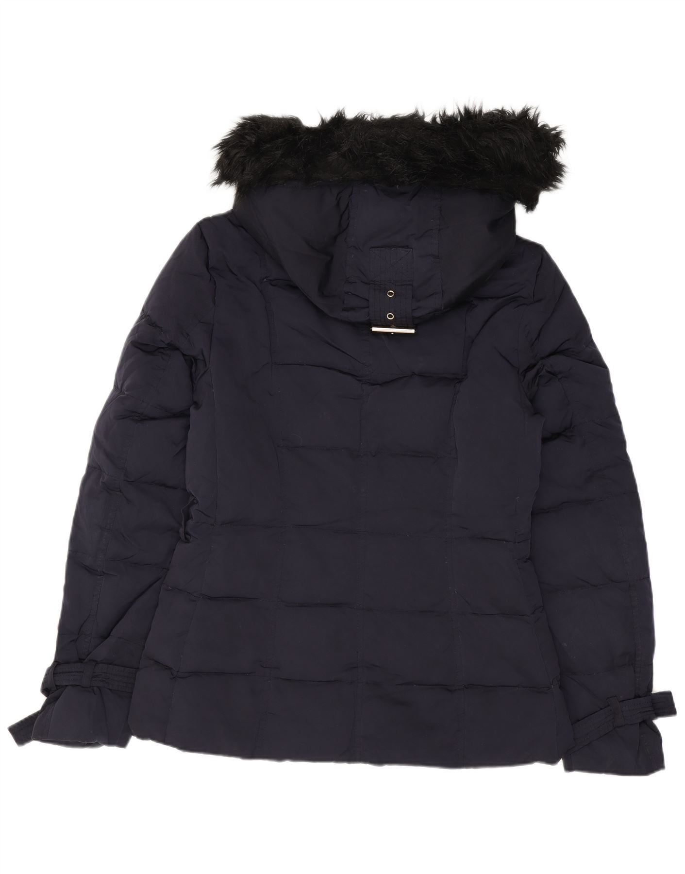 Женская стеганая куртка с капюшоном ZARA UK 10, маленькая, темно-синий, нейлон