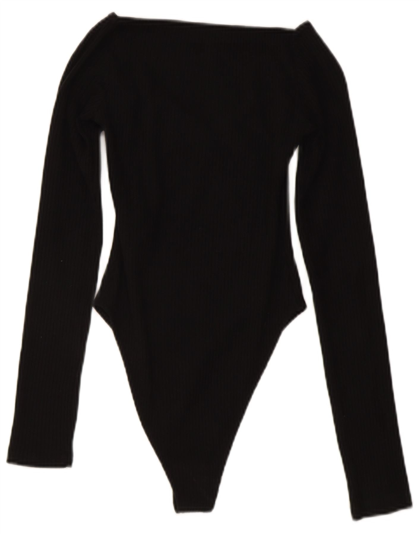 ZARA Womens Long Sleeve Bodysuit UK 12 Medium Black Cotton